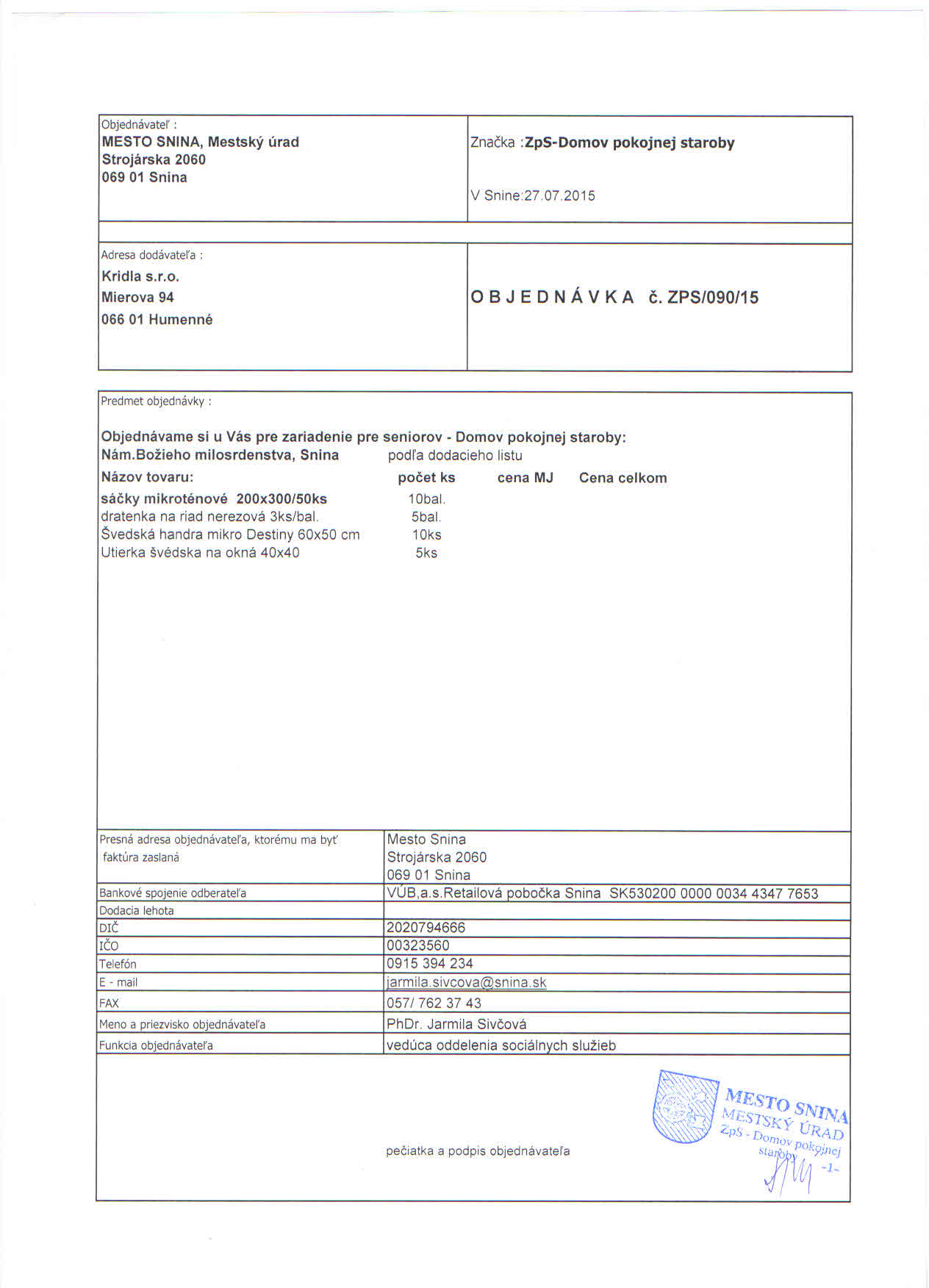 Detail objednávky ZPS/090/15