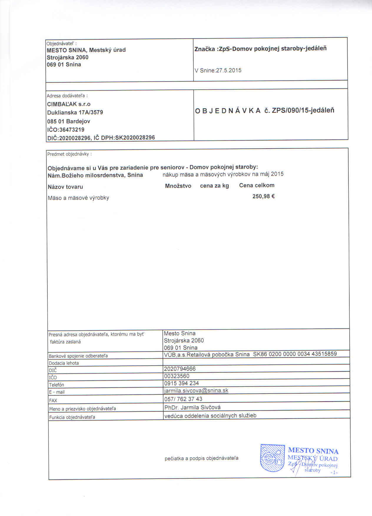 Detail objednávky ZPS/090/15-jedáleň