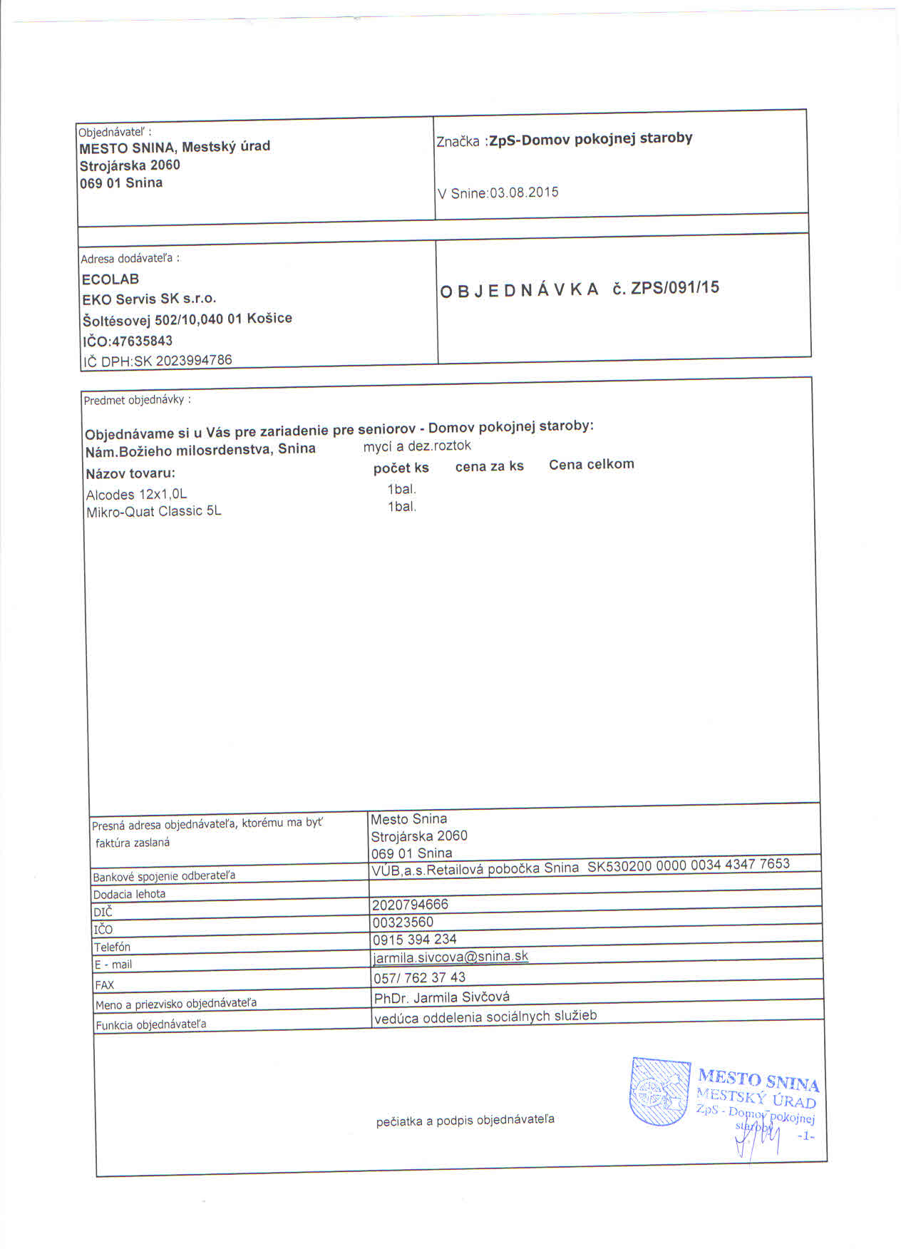 - Mesto Snina, Mestský úrad Snina, Strojárska 2060/95, 069 01 Snina