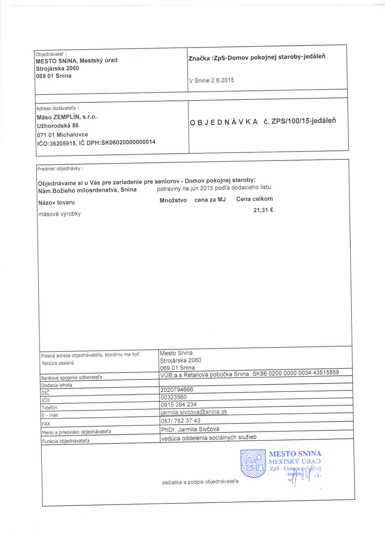 - Mäso ZEMPLÍN, a. s. , Užhorodská 86, 071 01 Michalovce