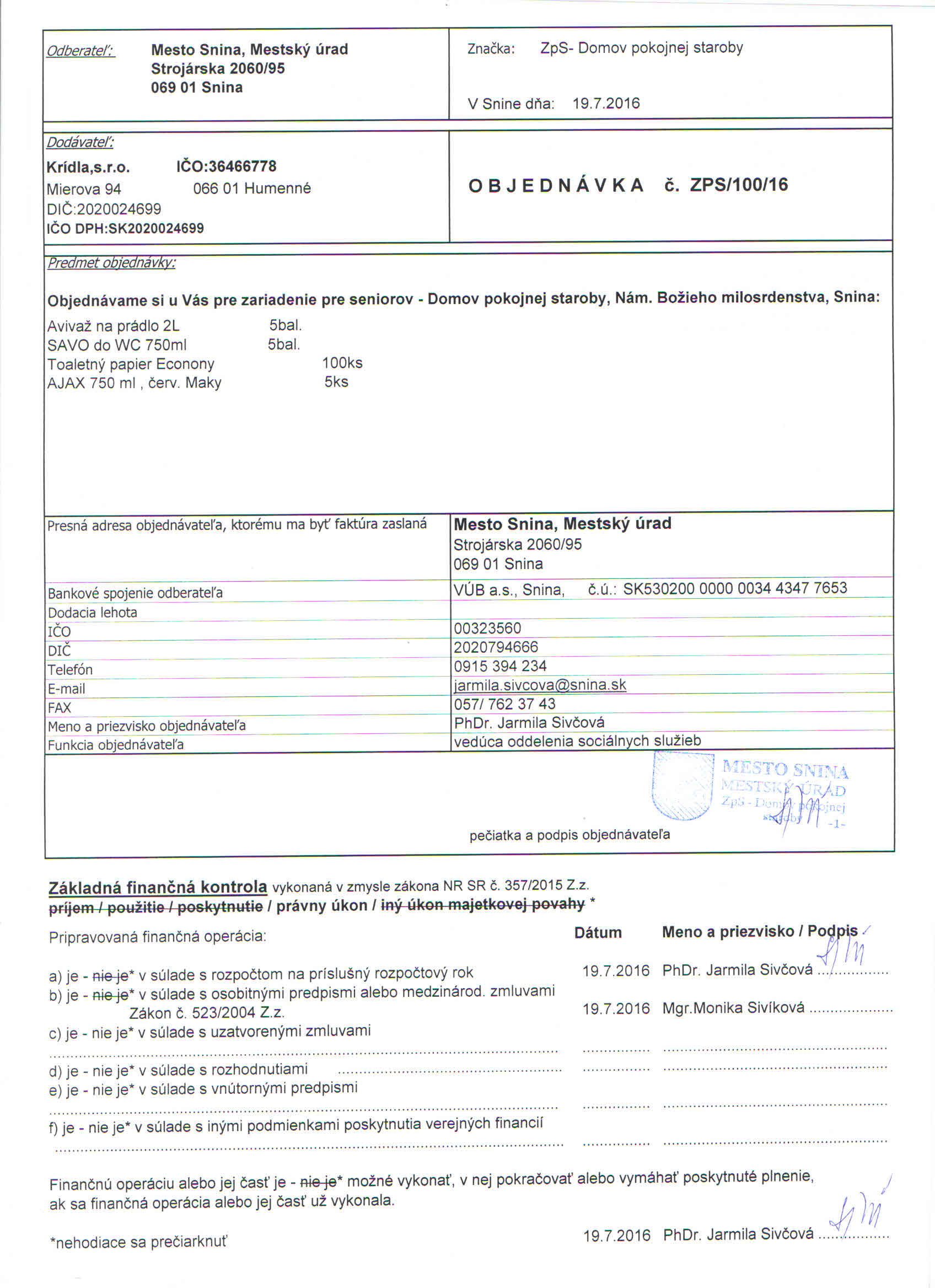 Detail objednávky ZPS/100/16