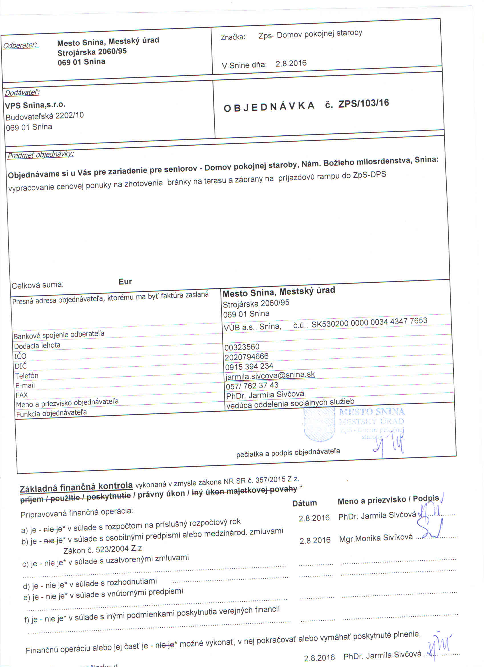 Detail objednávky ZPS/103/16