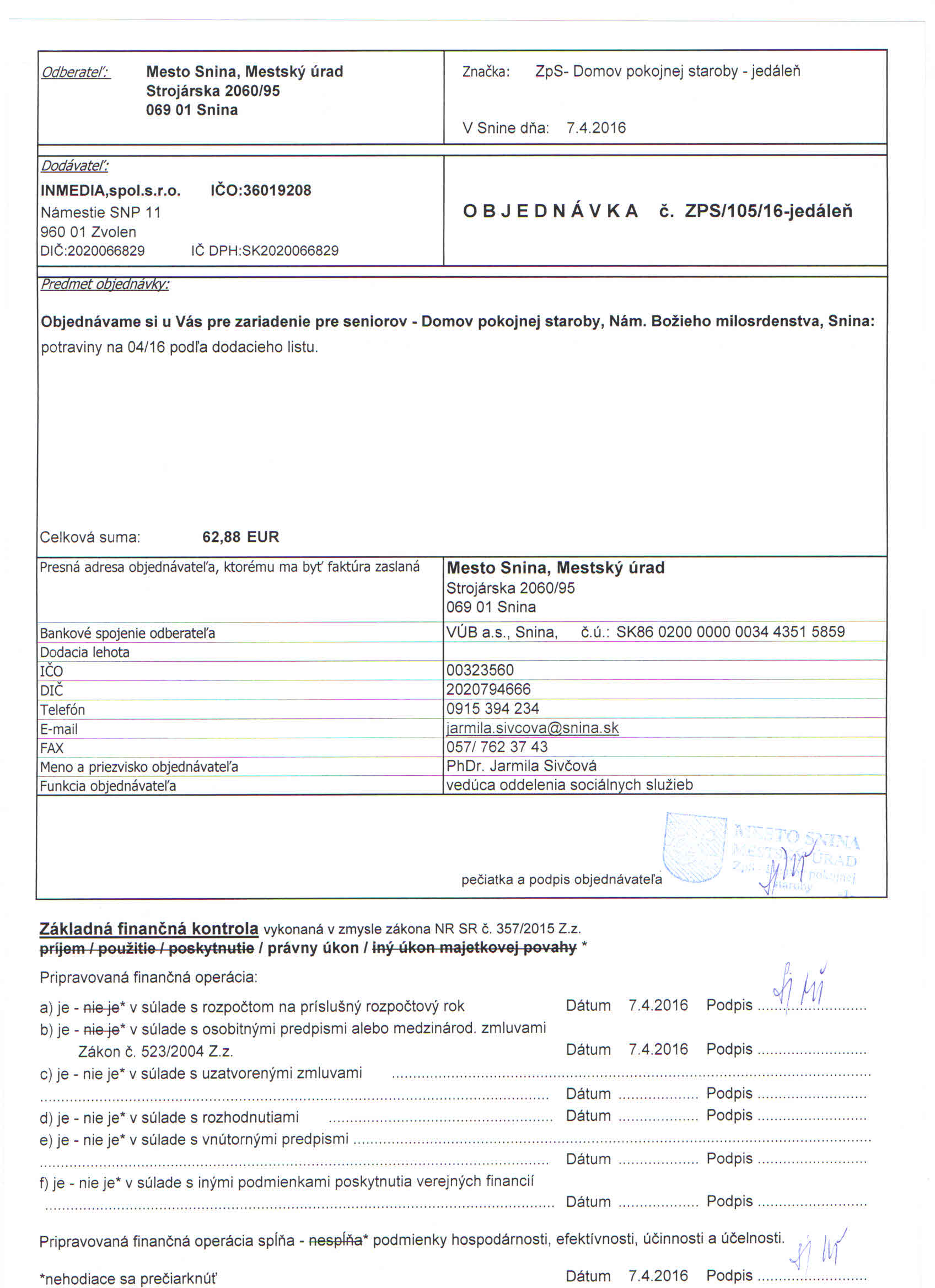 Detail objednávky ZPS/105/16-jedáleň