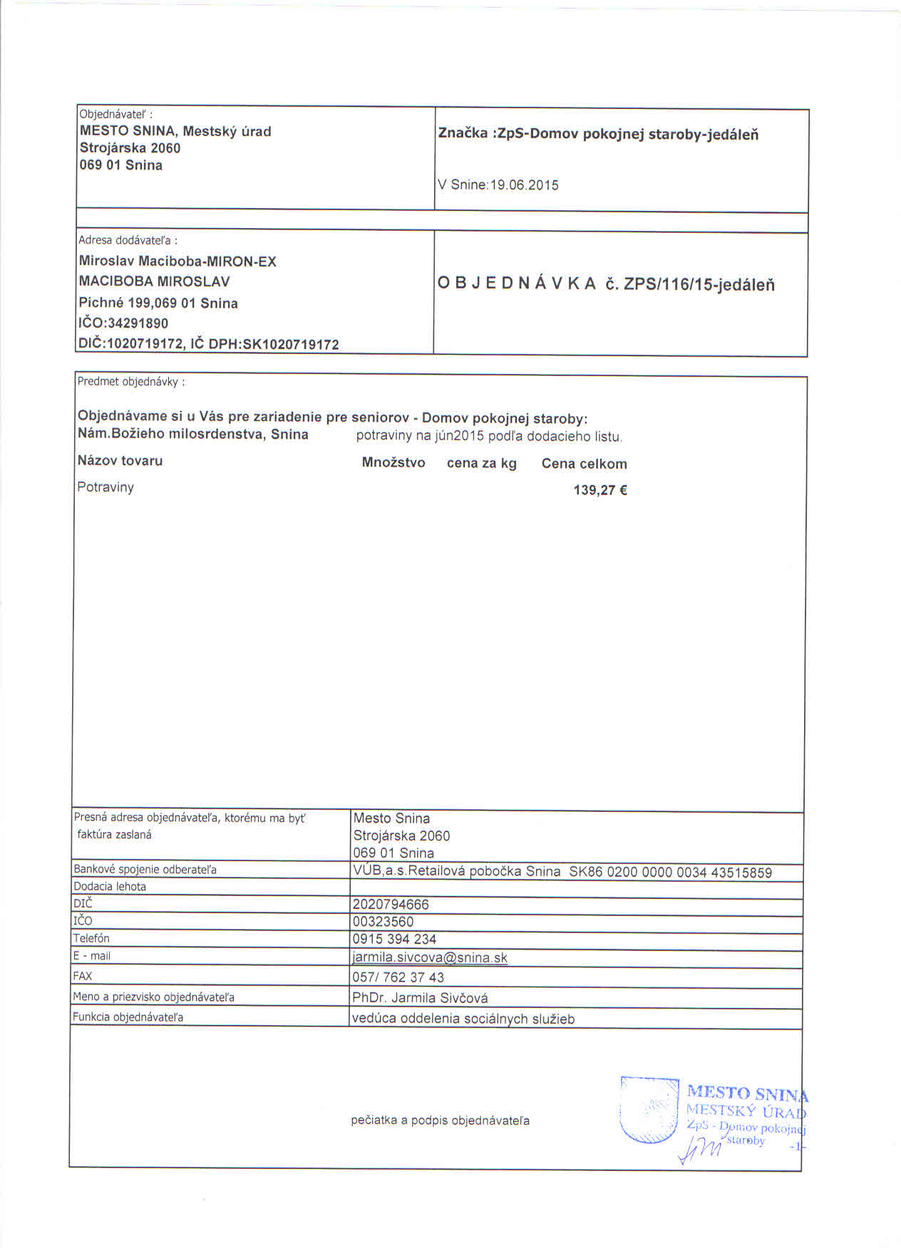 Detail objednávky ZPS/116/15-jedáleň
