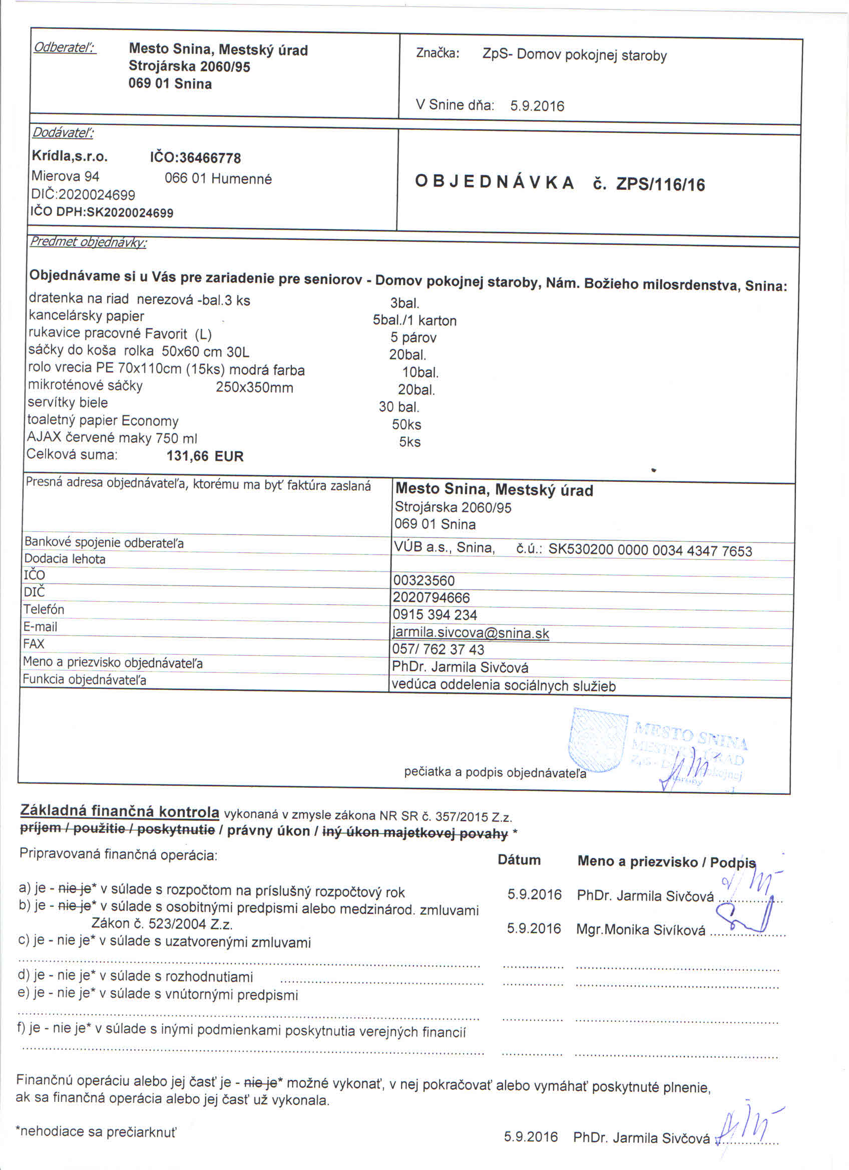 Detail objednávky ZPS/116/16