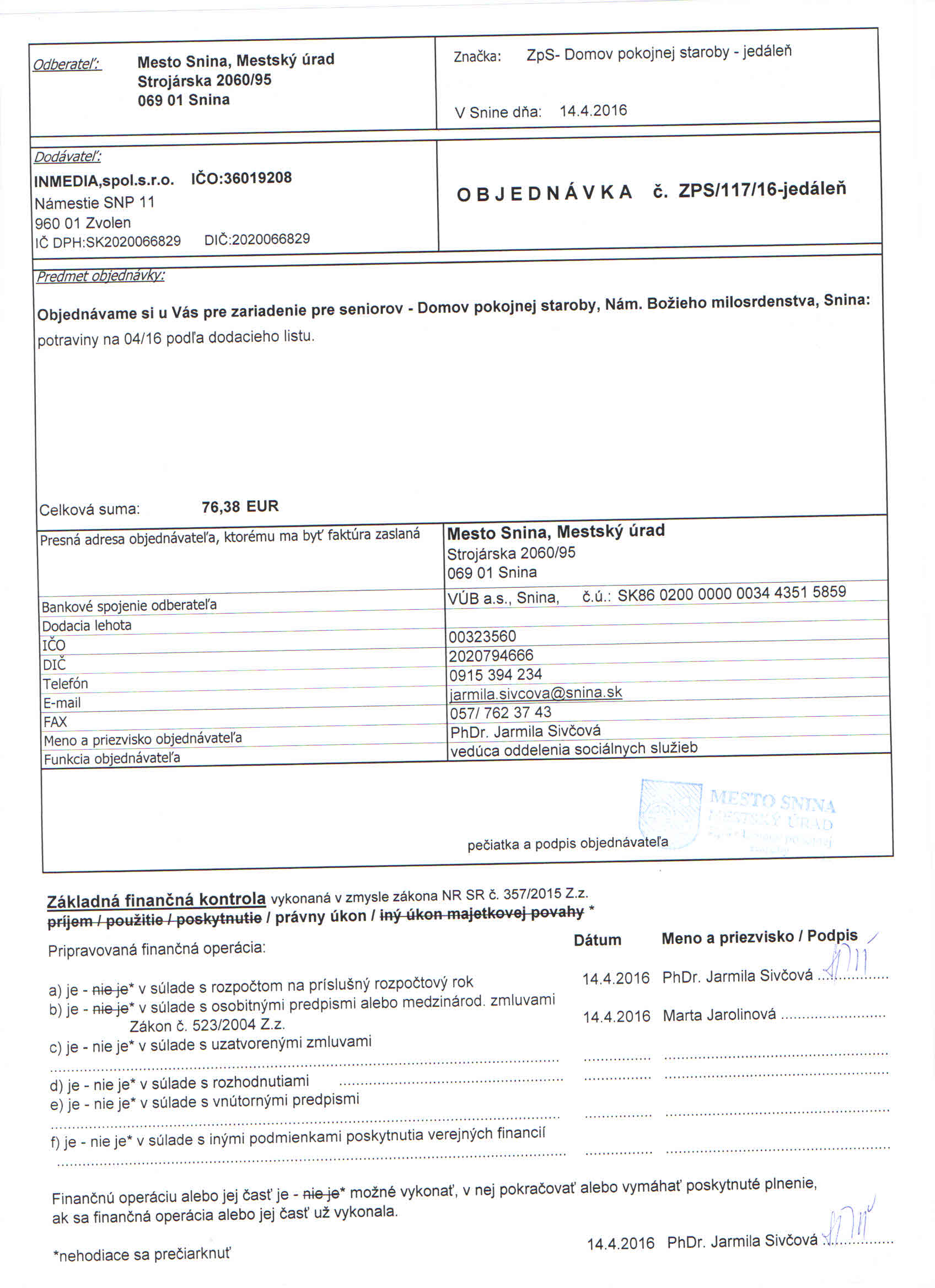 Detail objednávky ZPS/117/16-jedáleň