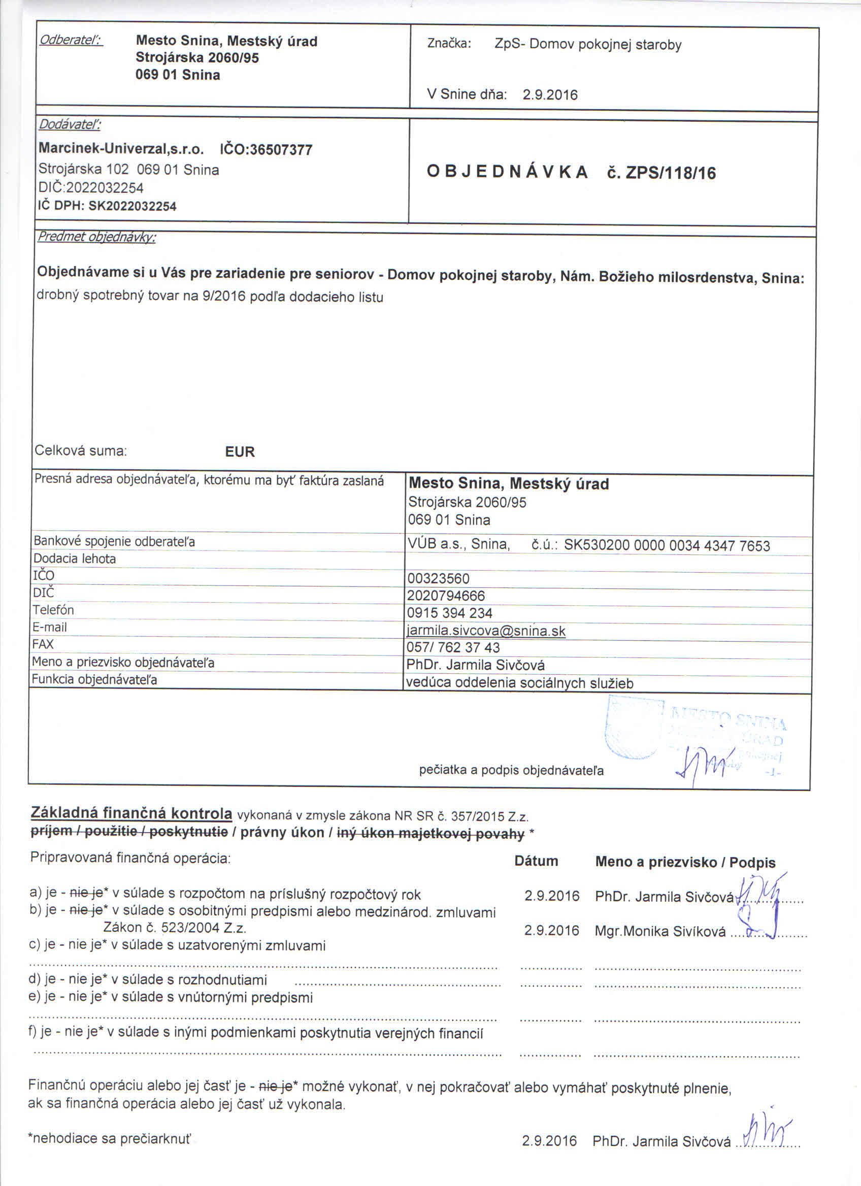 - Mesto Snina, Mestský úrad Snina, Strojárska 2060/95, 069 01 Snina