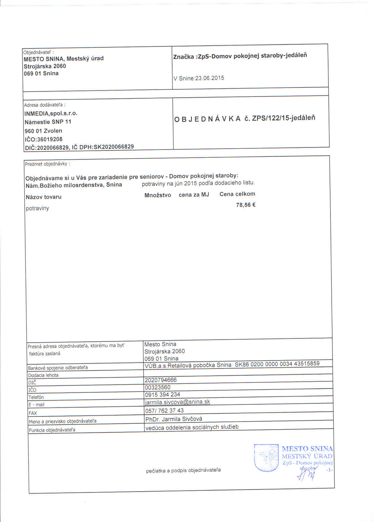Detail objednávky ZPS/122/15-jedáleň