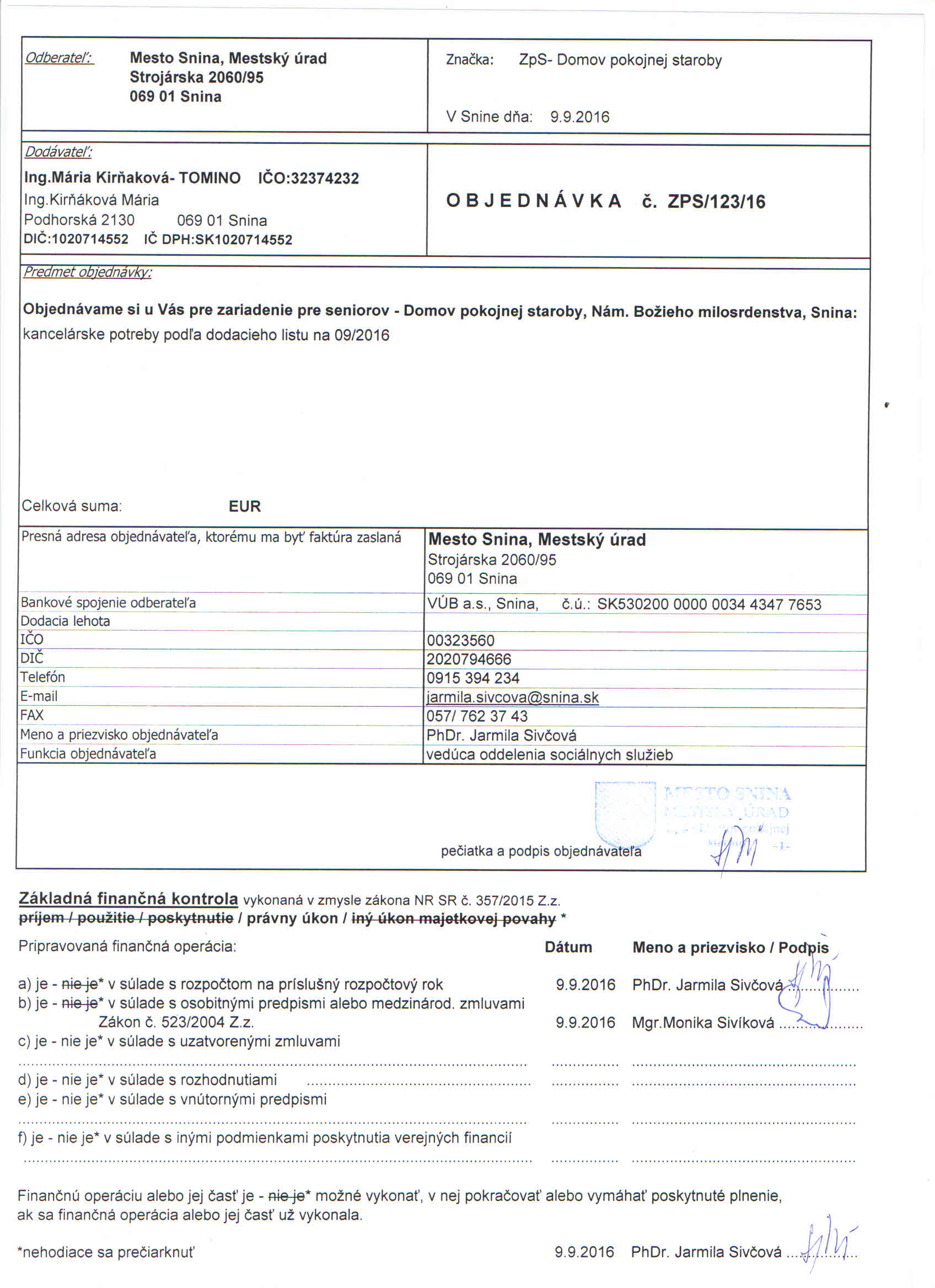- Mesto Snina, Mestský úrad Snina, Strojárska 2060/95, 069 01 Snina