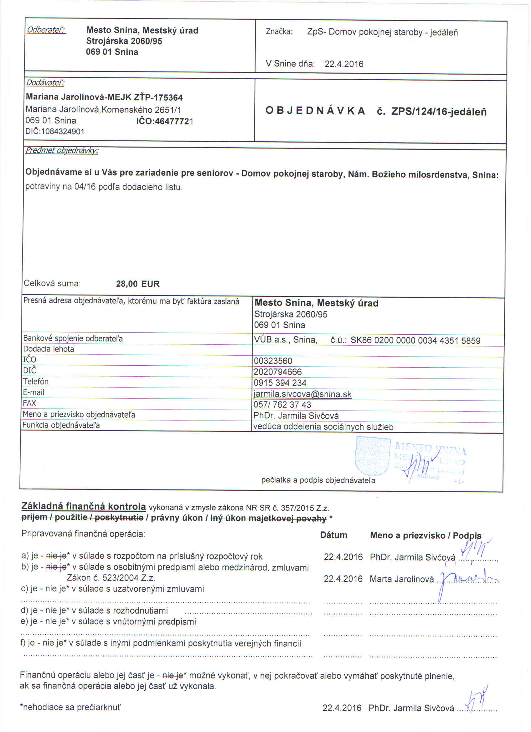 - Mesto Snina, Mestský úrad, Strojárska 2060/95, 069 01, Snina