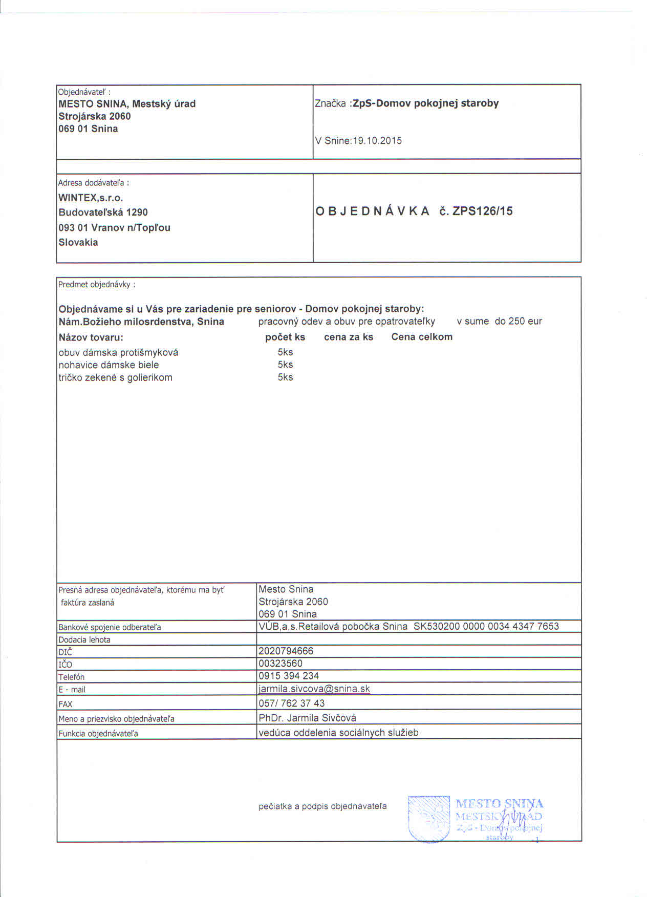 - Mesto Snina, Mestský úrad Snina, Strojárska 2060/95, 069 01 Snina