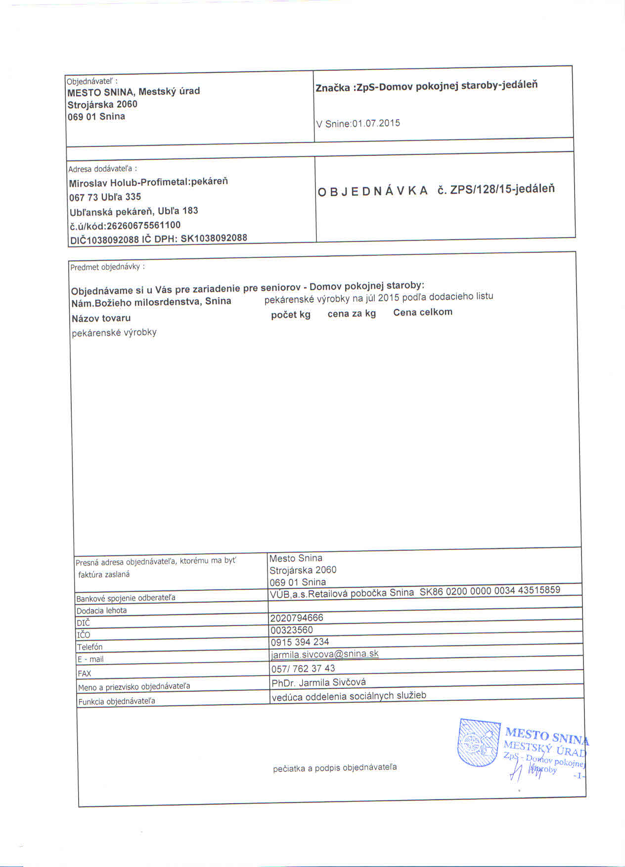 - pekárenské výrobky na júl 2015 podľa dodacieho listu