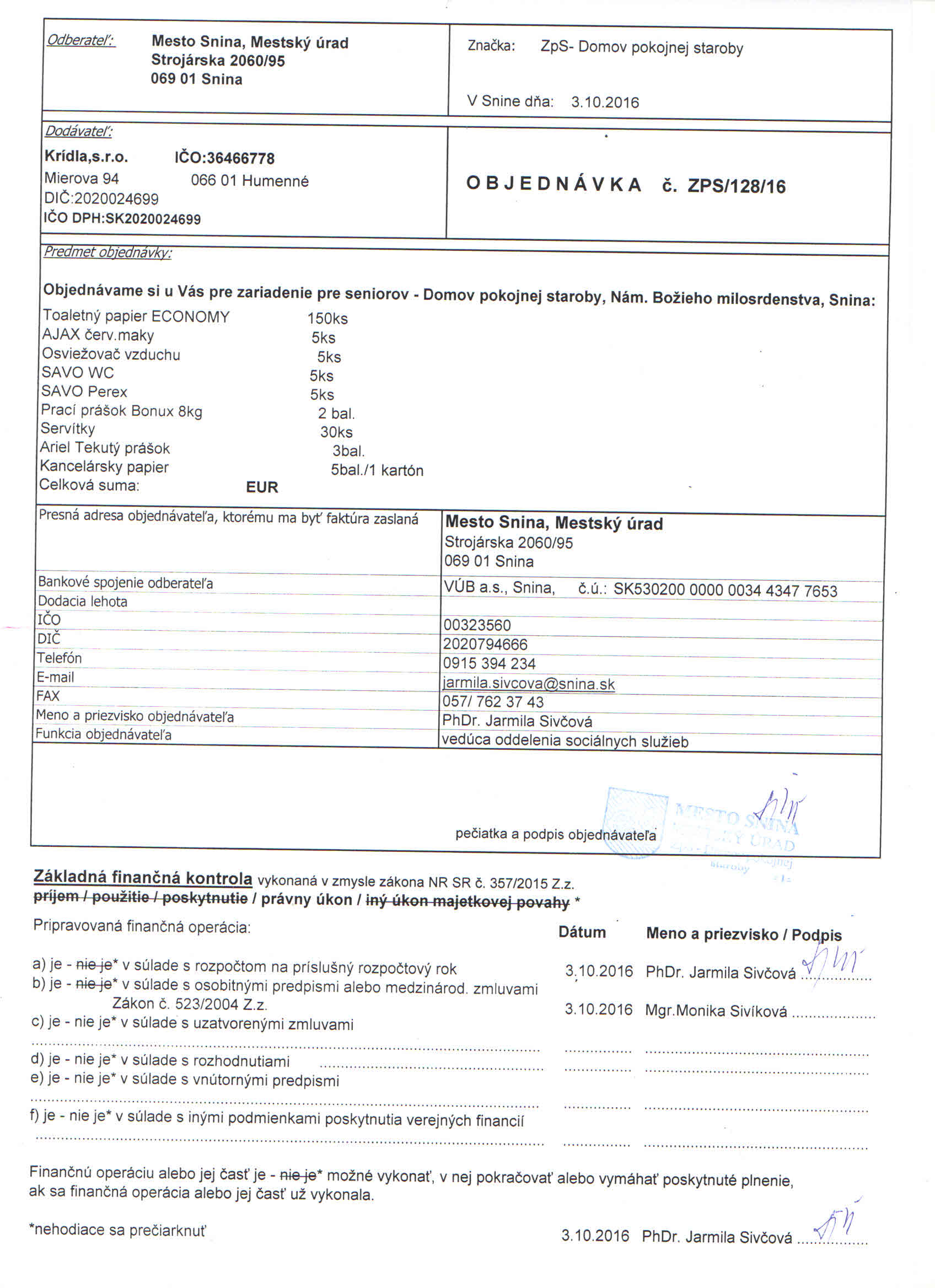 - Mesto Snina, Mestský úrad, Strojárska 2060/95, 069 01 Snina