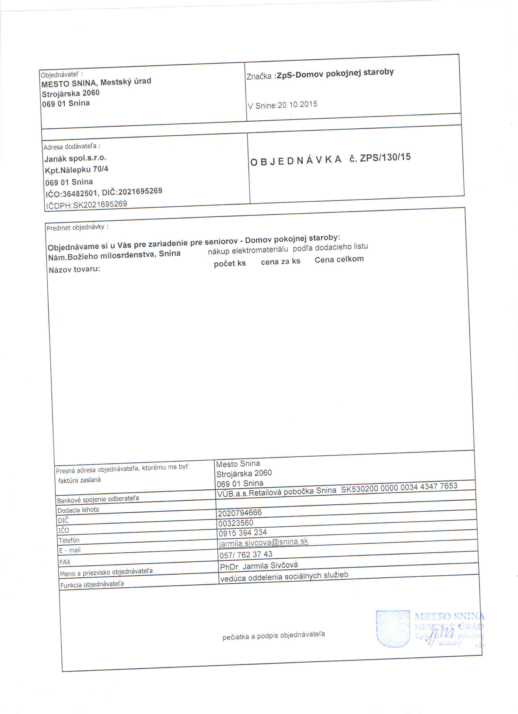 Detail objednávky ZPS/130/15