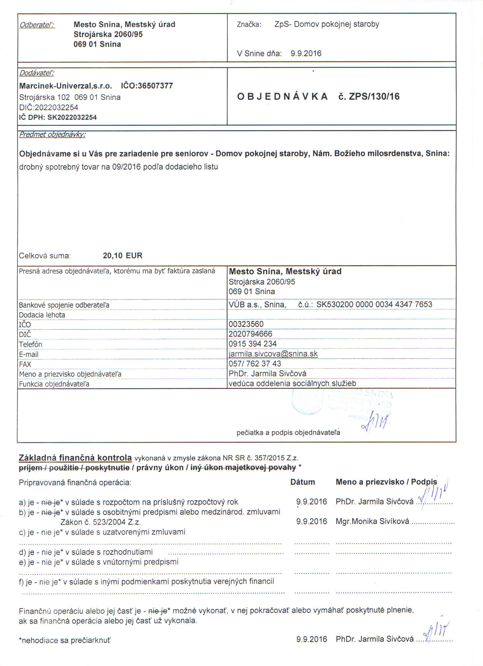 - drobný spotrebný tovar na 09/2016 podľa dodacieho listu