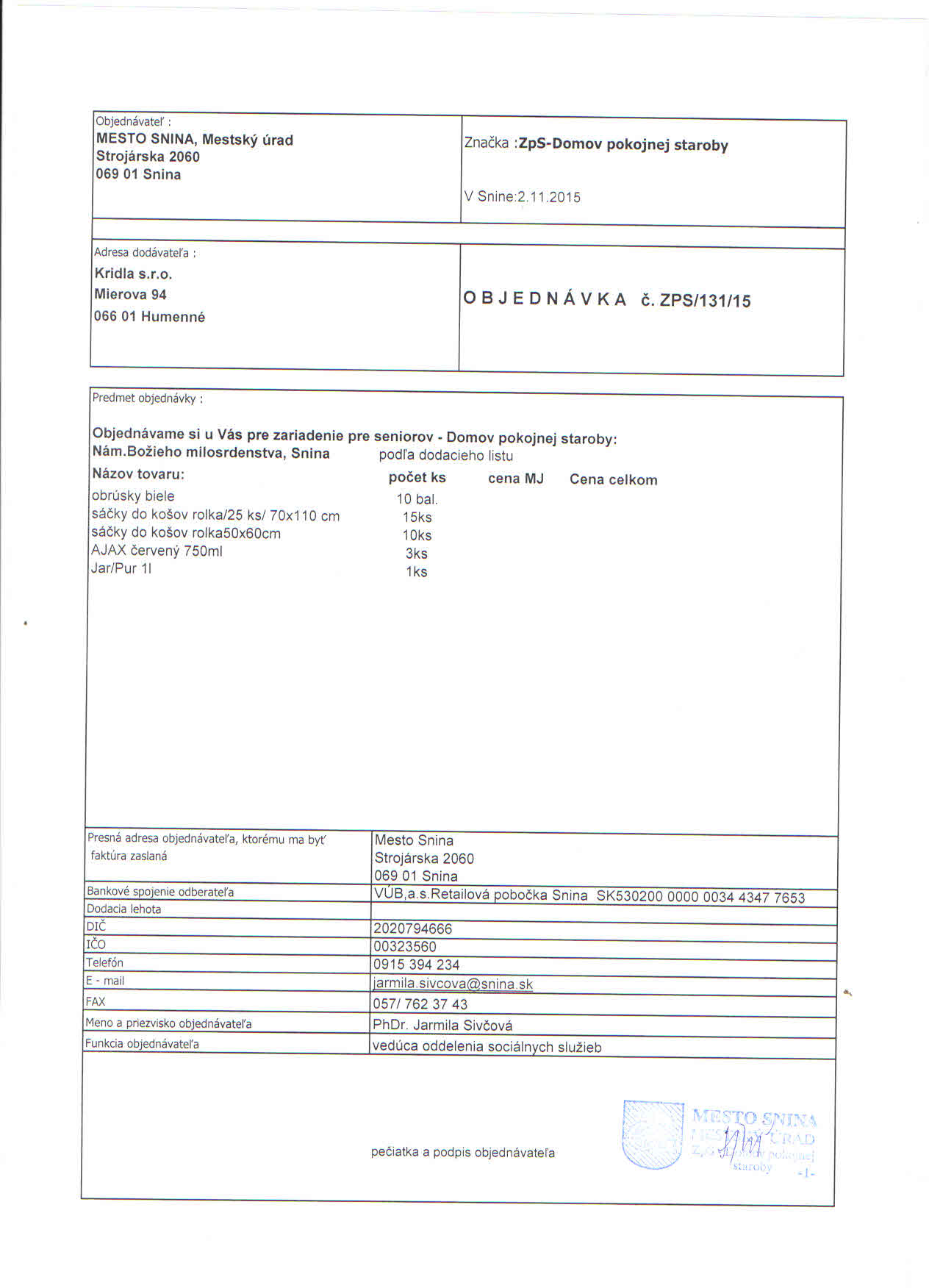 - Mesto Snina, Mestský úrad, Strojárska 2060/95, 069 01, Snina
