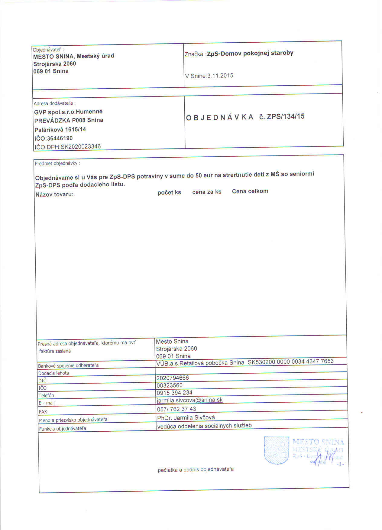 - Mesto Snina, Mestský úrad Snina, Strojárska 2060/95, 069 01 Snina