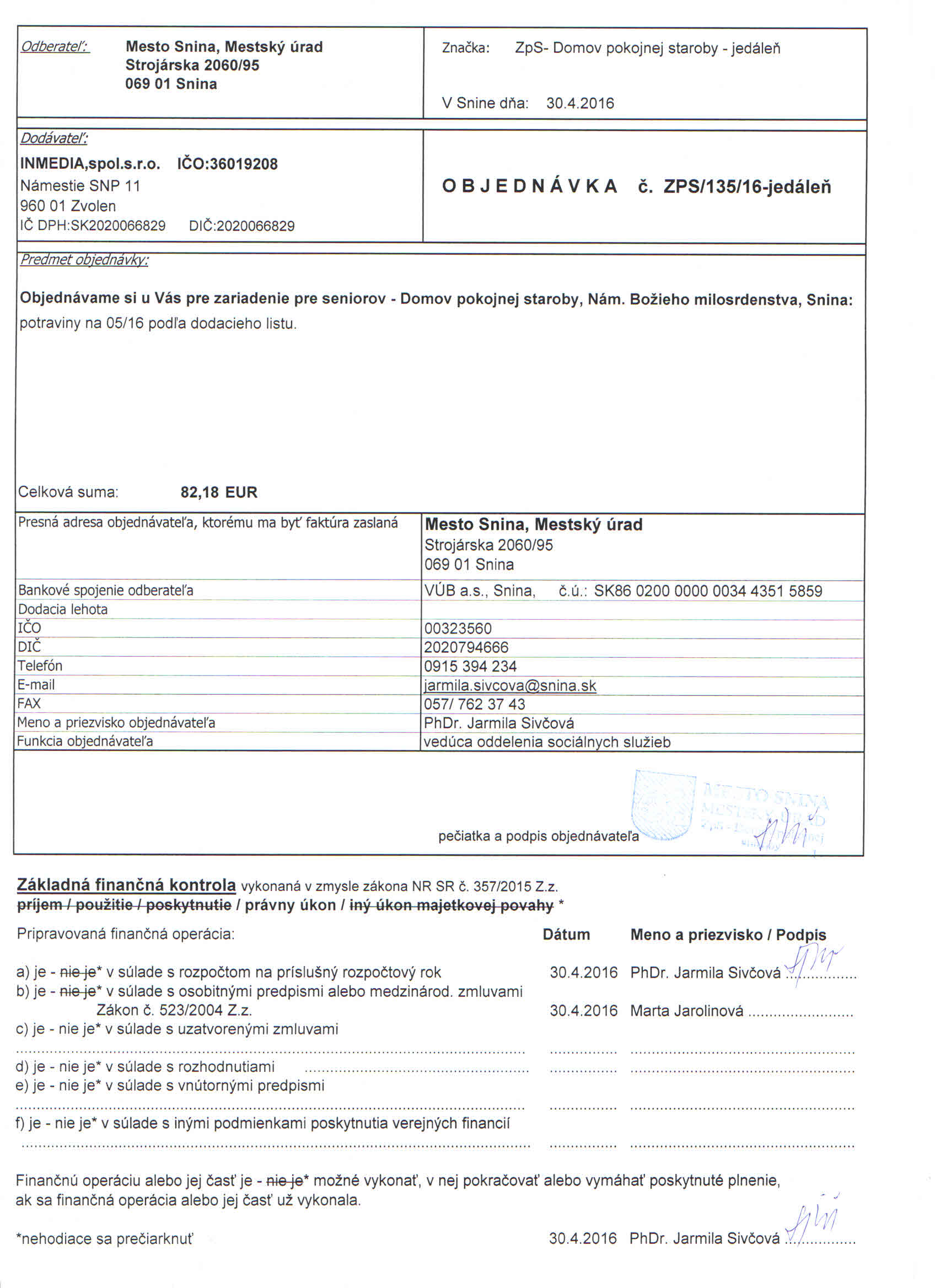 Detail objednávky ZPS/135/16-jedáleň