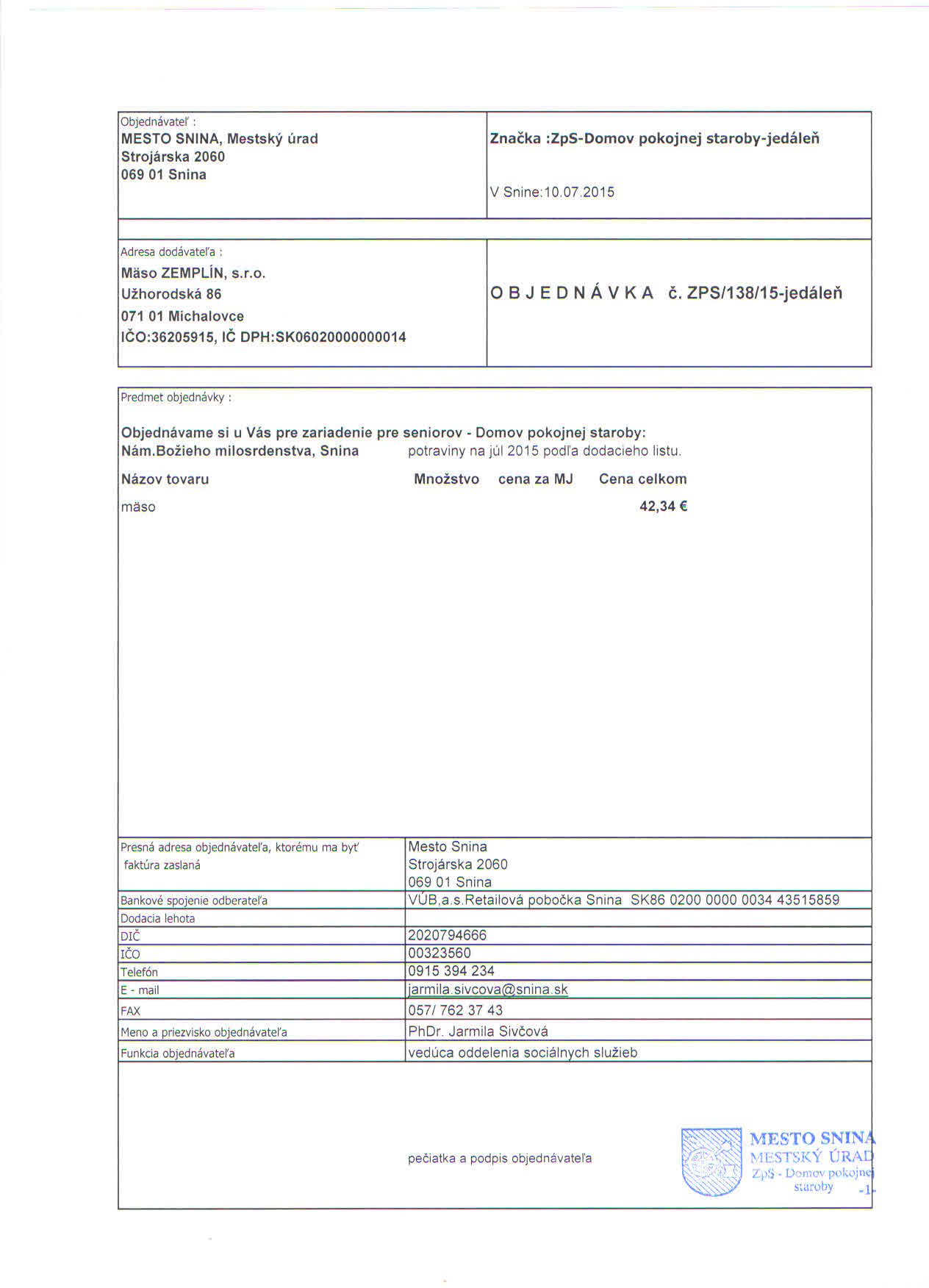 - Mesto Snina, Mestský úrad Snina, Strojárska 2060/95, 069 01 Snina