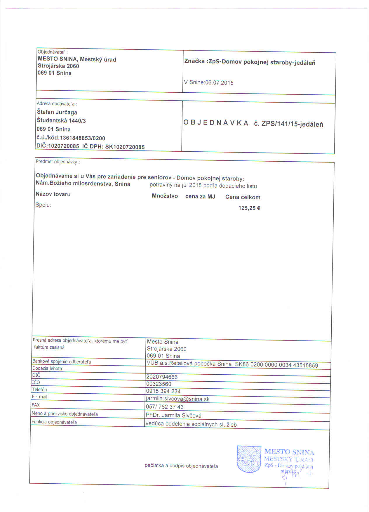 Detail objednávky ZPS/141/15-jedáleň