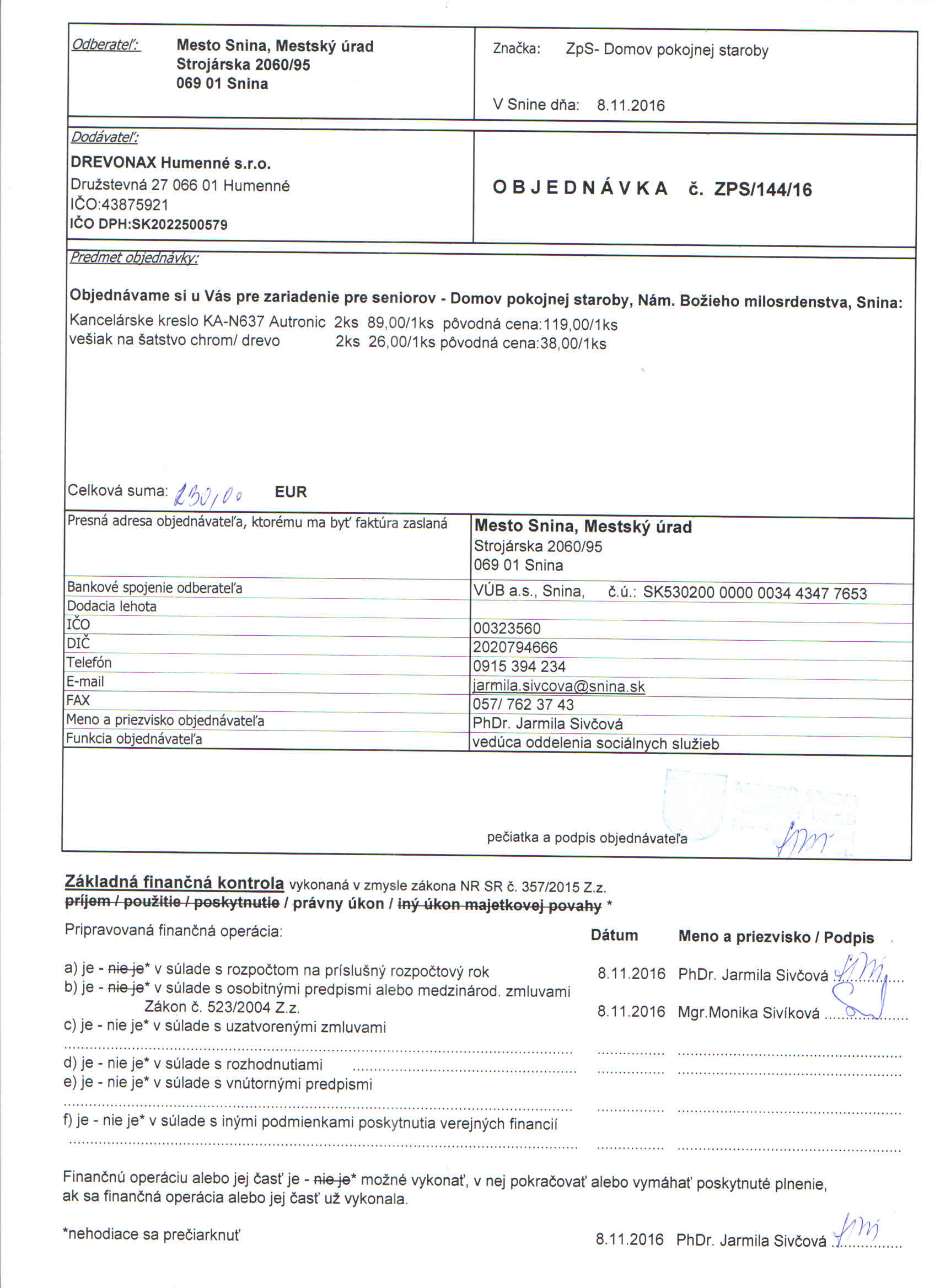 - Mesto Snina, Mestský úrad Snina, Strojárska 2060/95, 069 01 Snina
