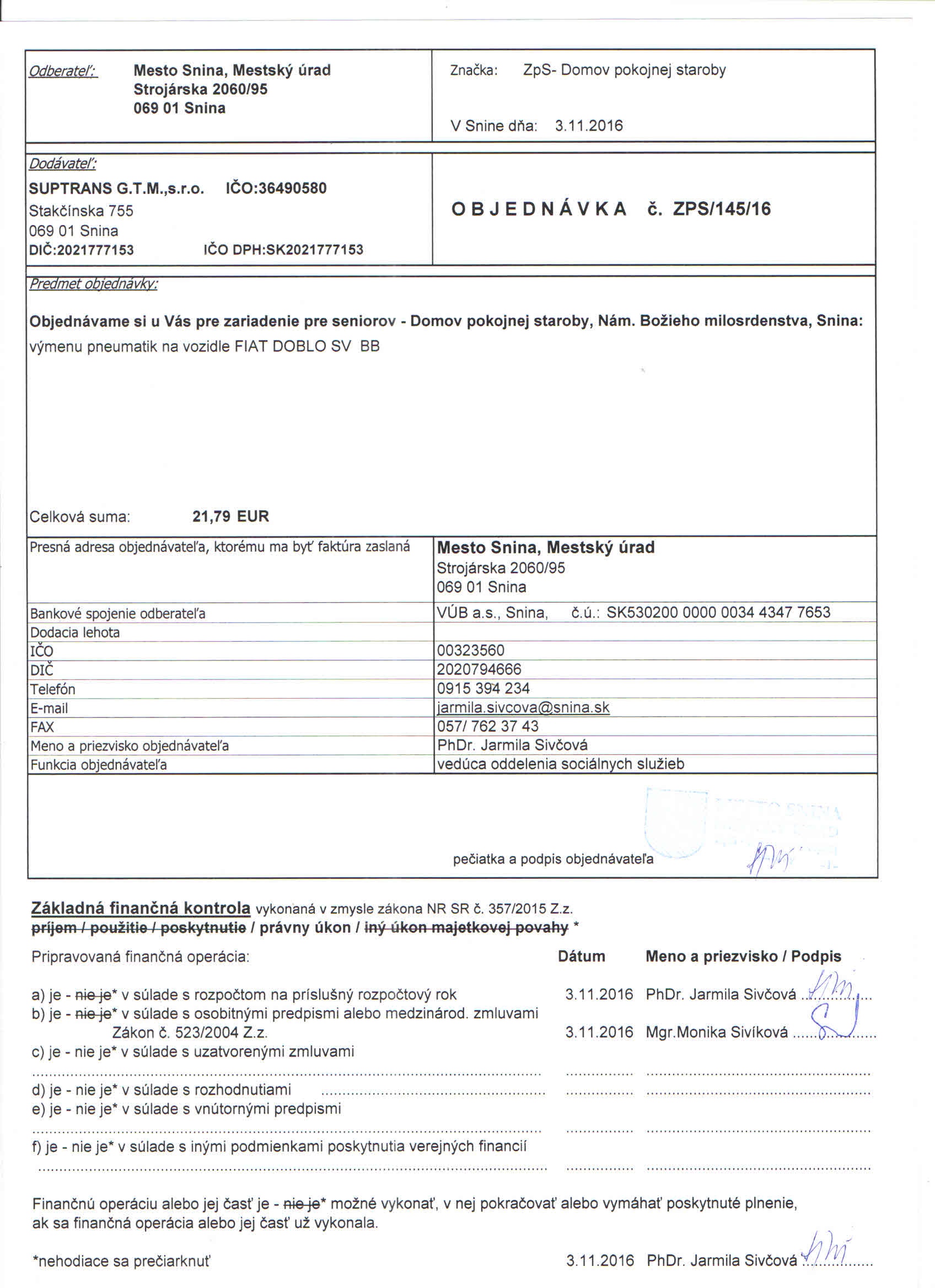 - Mesto Snina, Mestský úrad Snina, Strojárska 2060/95, 069 01 Snina