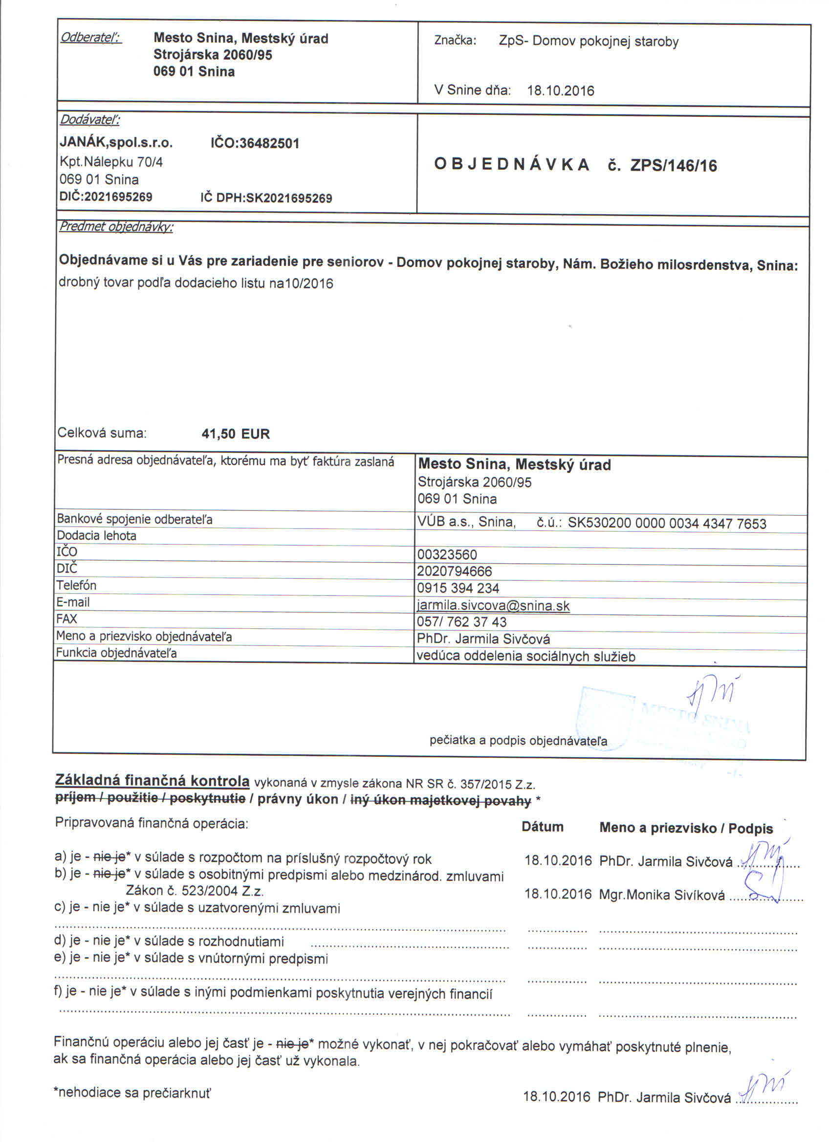 Detail objednávky ZPS/146/16