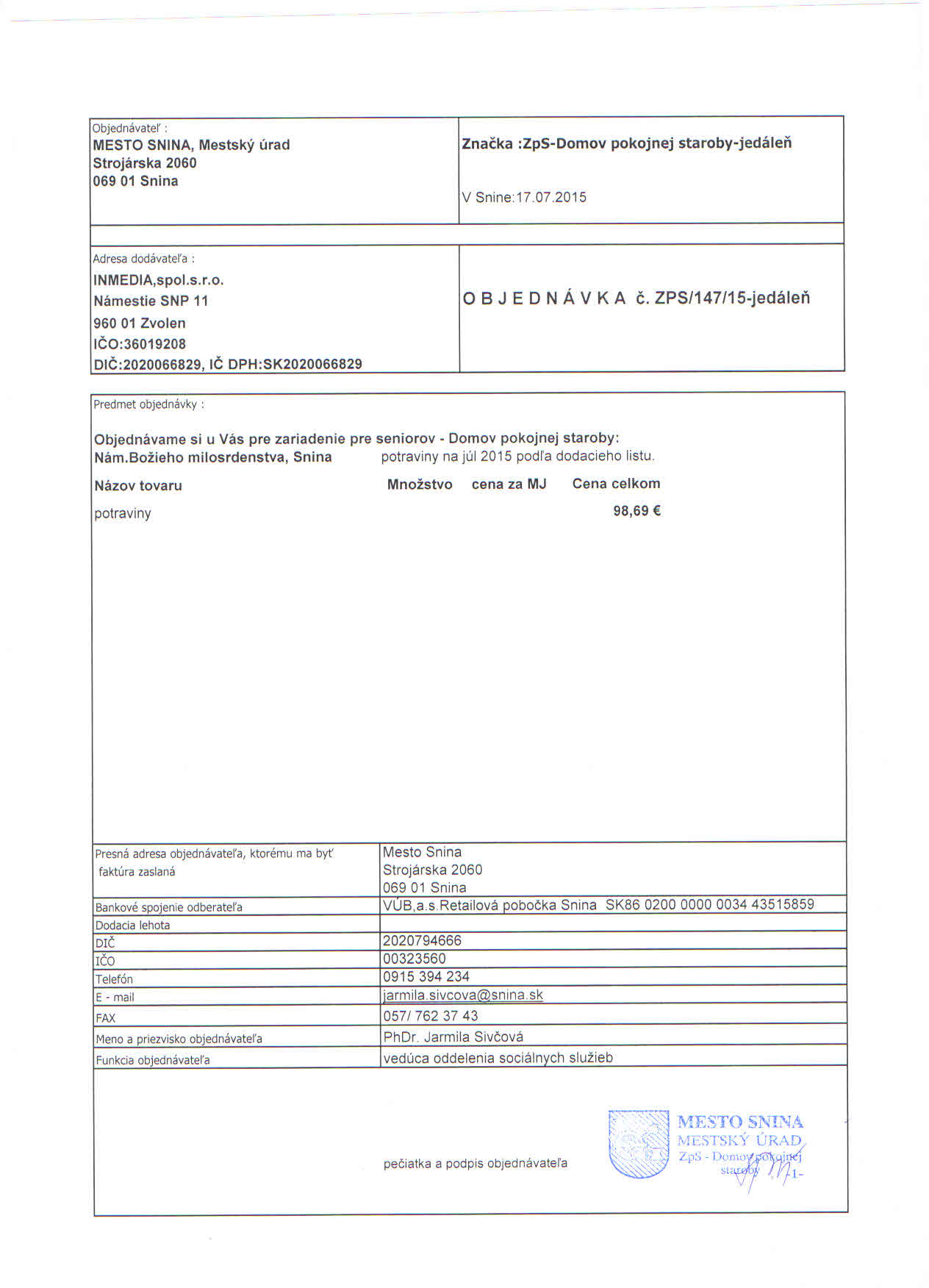 Detail objednávky ZPS/147/15-jedáleň