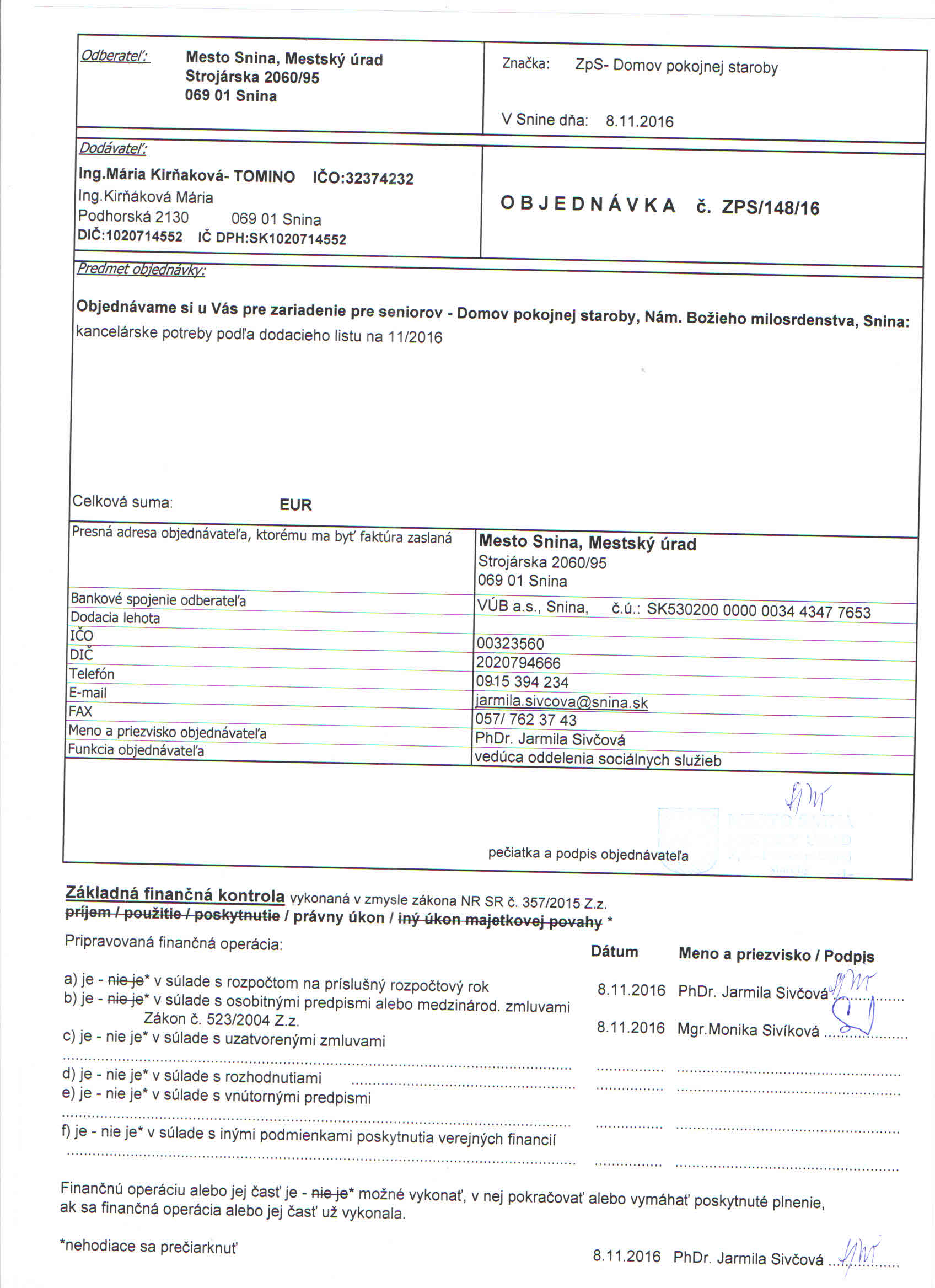 - Ing. Mária Kirňáková - TOMINO, Podhorská 2130, 069 01 Snina