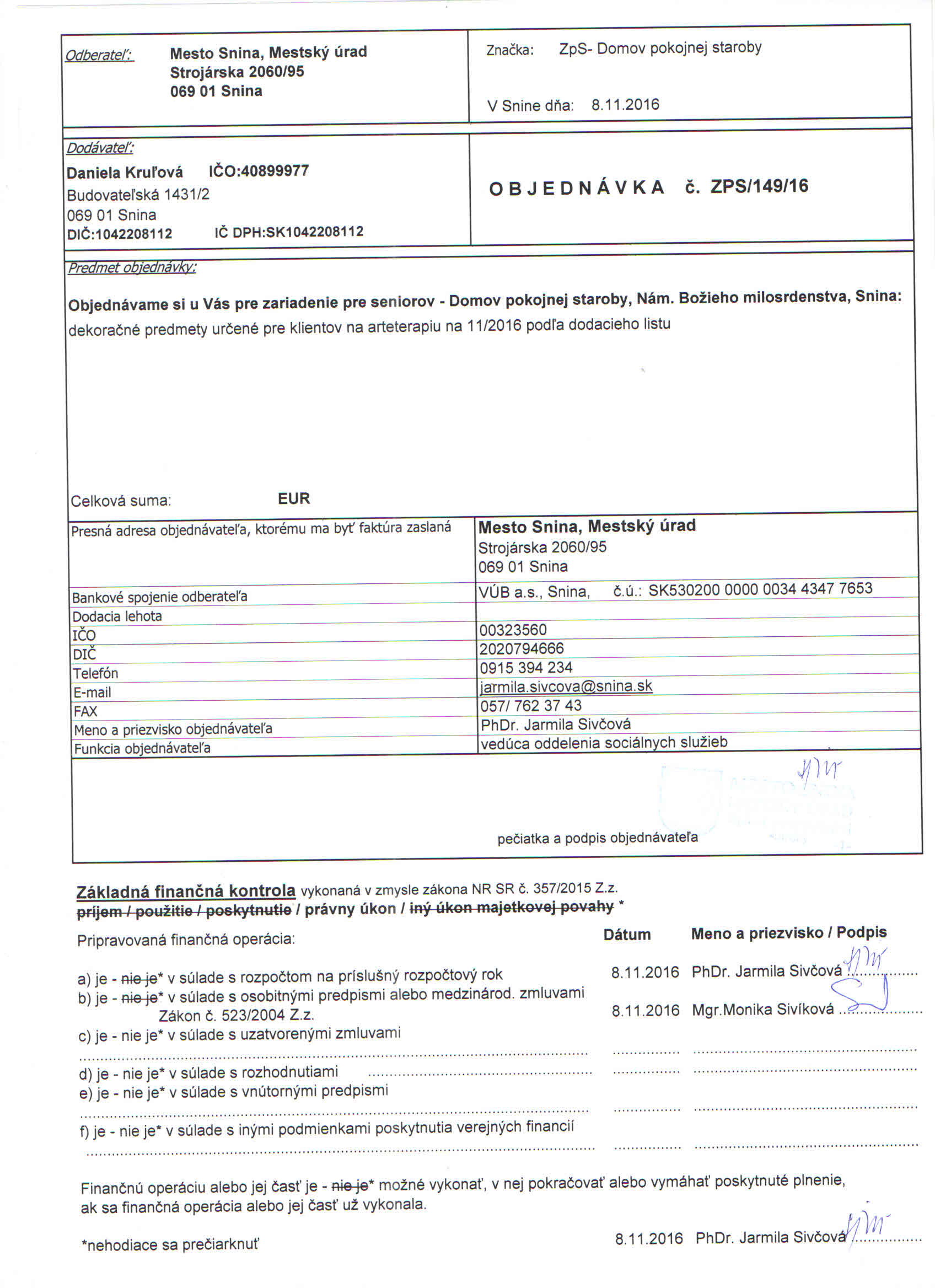 - Mesto Snina, Mestský úrad, Strojárska 2060/95, 069 01 Snina
