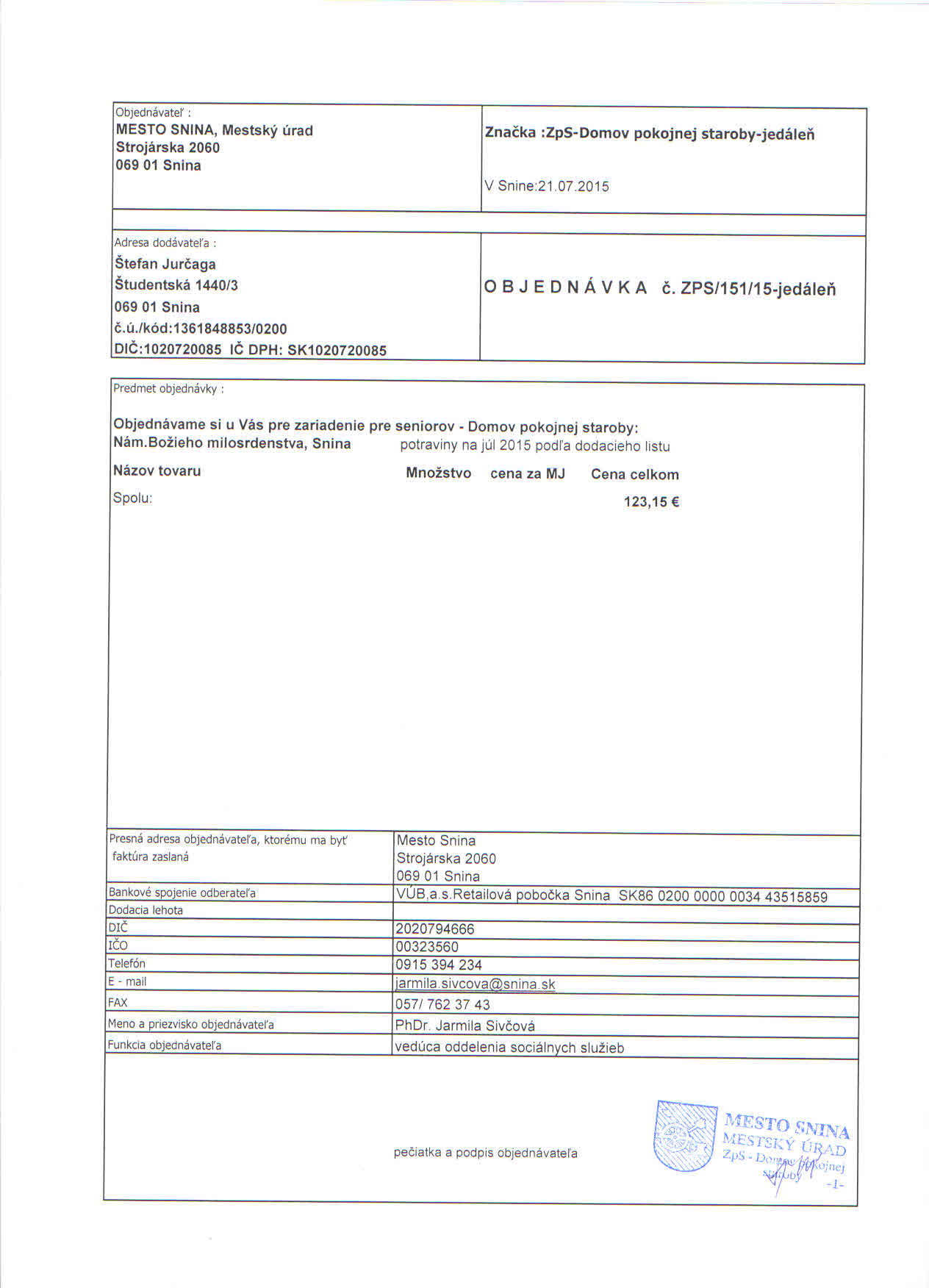 Detail objednávky ZPS/151/15-jedáleň