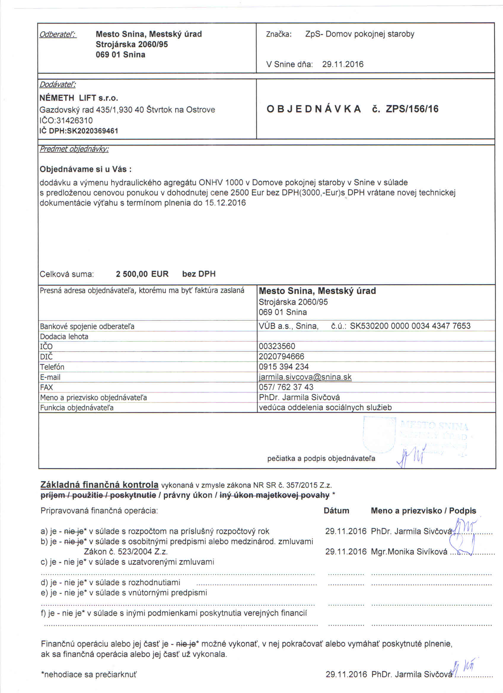 Detail objednávky ZPS/156/16