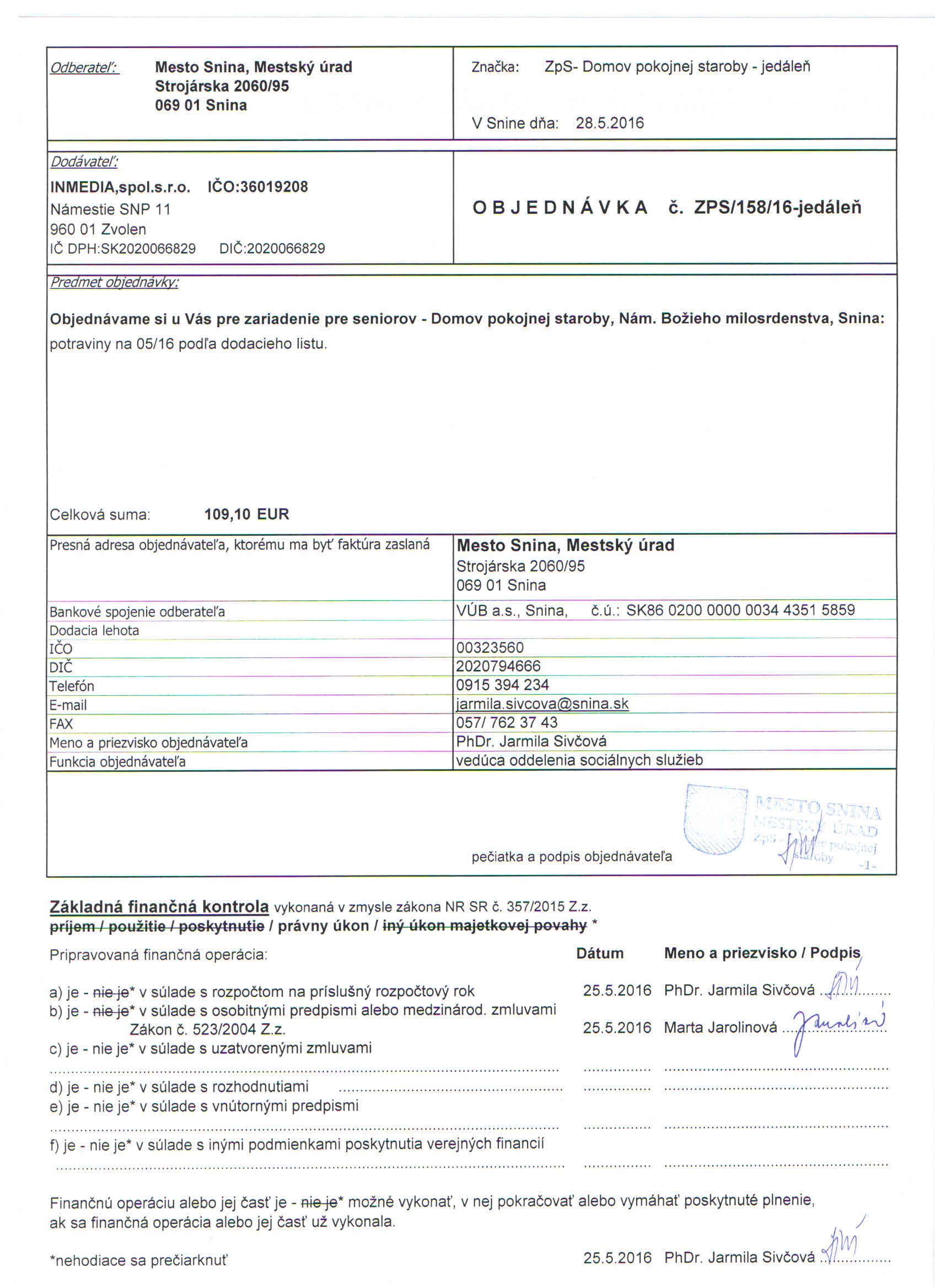 - Mesto Snina, Mestský úrad, Strojárska 2060/95, 069 01 Snina