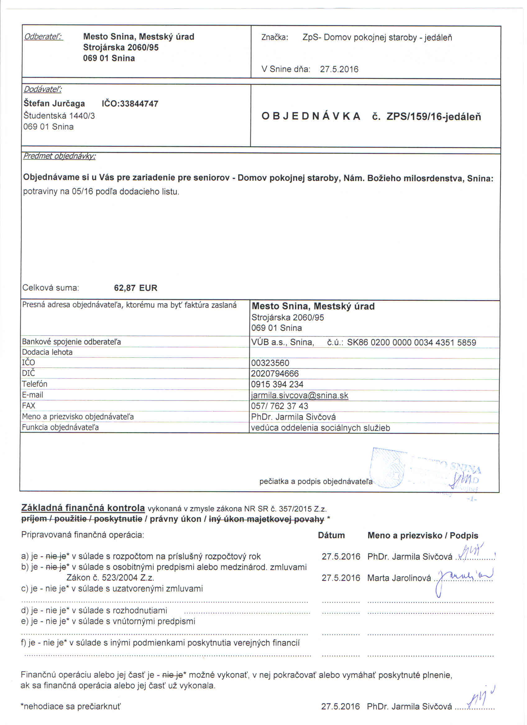 - Mesto Snina, Mestský úrad, Strojárska 2060/95, 069 01 Snina