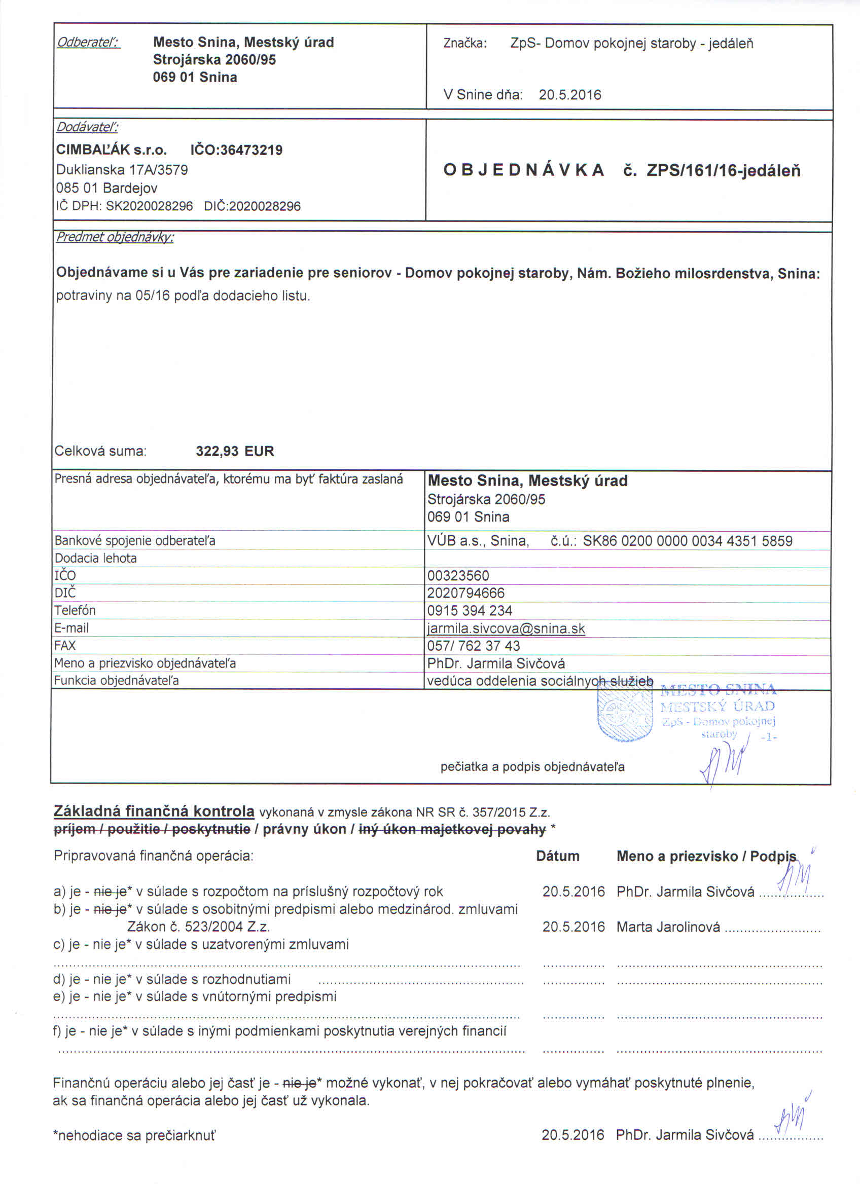 Detail objednávky ZPS/161/16-jedáleň
