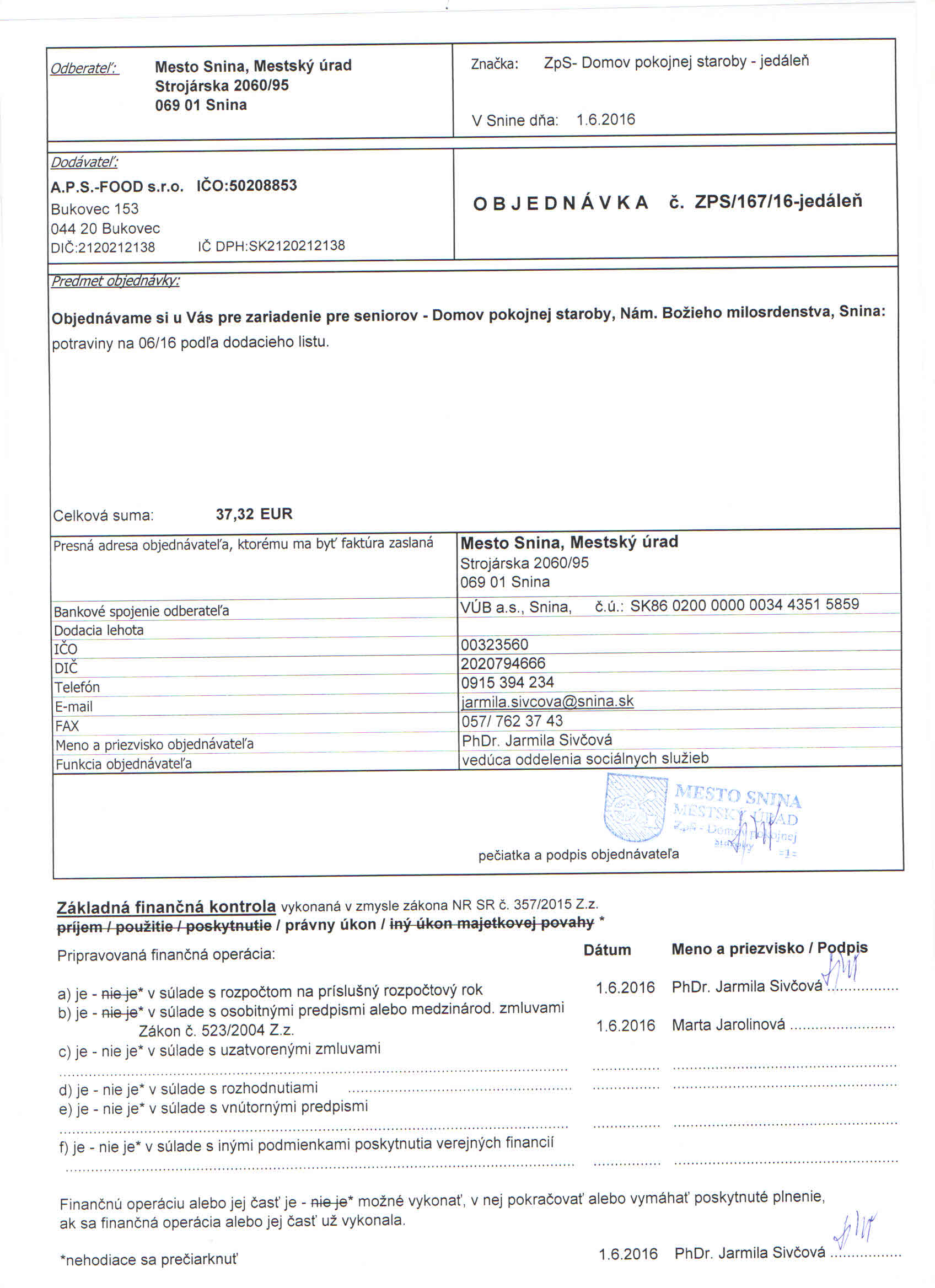 - Mesto Snina, Mestský úrad, Strojárska 2060/95, 069 01, Snina