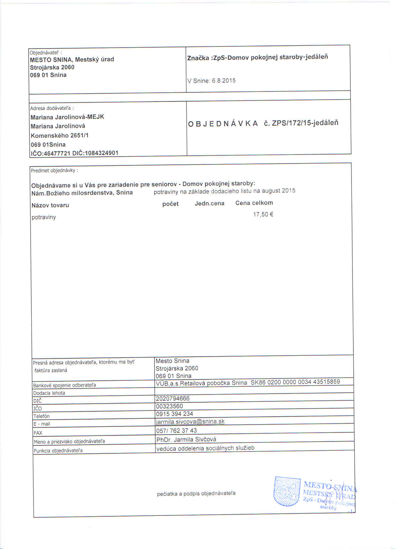 - Mesto Snina, Mestský úrad Snina, Strojárska 2060/95, 069 01 Snina