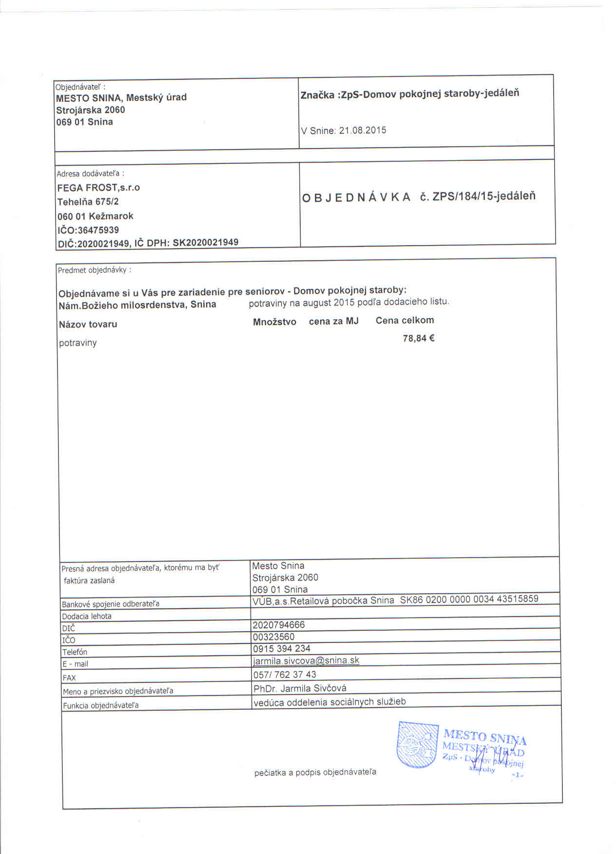Detail objednávky ZPS/184/15-jedáleň