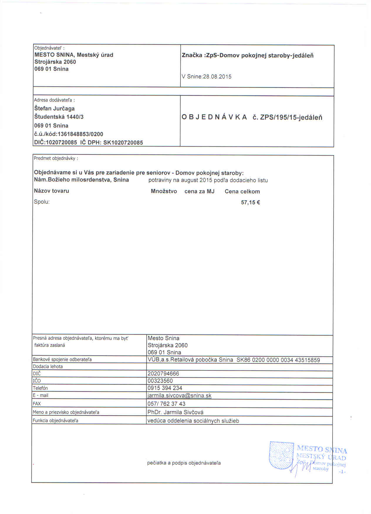 - Mesto Snina, Mestský úrad, Strojárska 2060/95, 069 01 Snina