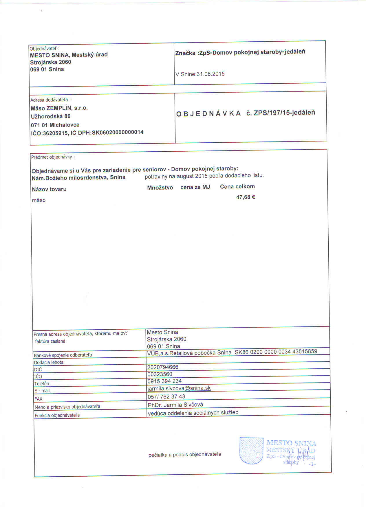 Detail objednávky ZPS/197/15-jedáleň
