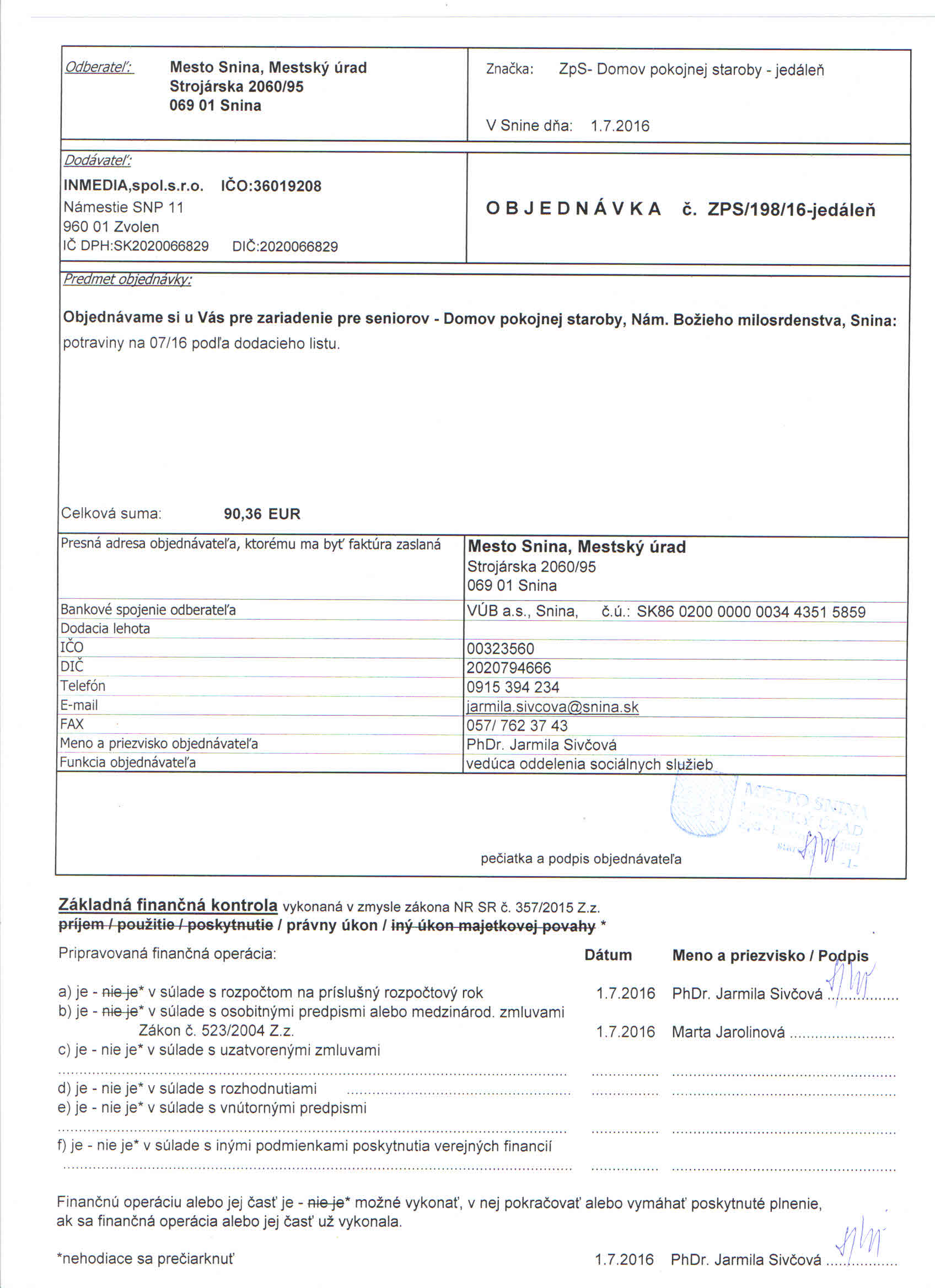 - Mesto Snina, Mestský úrad, Strojárska 2060/95, 069 01 Snin