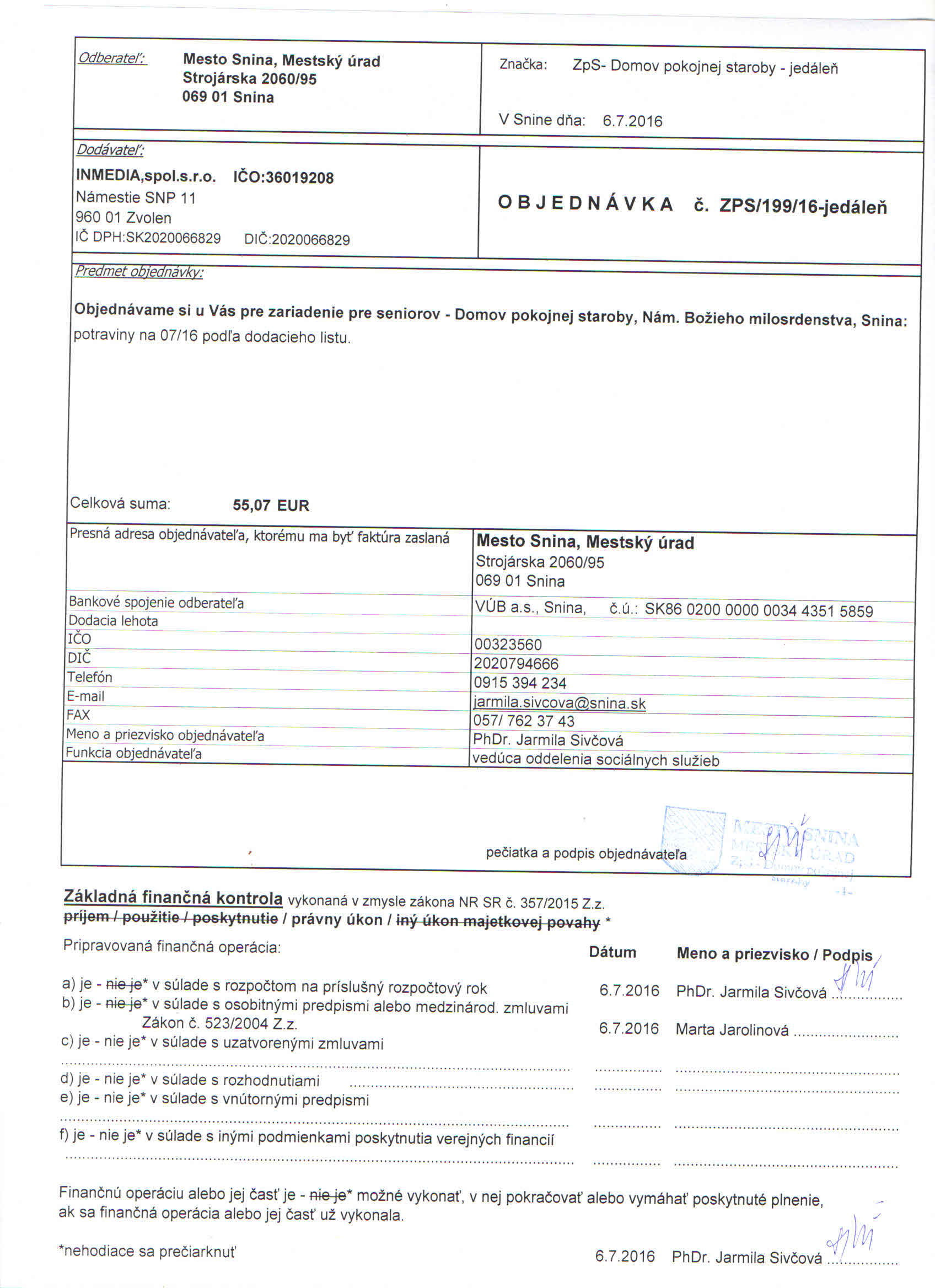 - Mesto Snina, Mestský úrad, Strojárska 2060/95, 069 01 Snin
