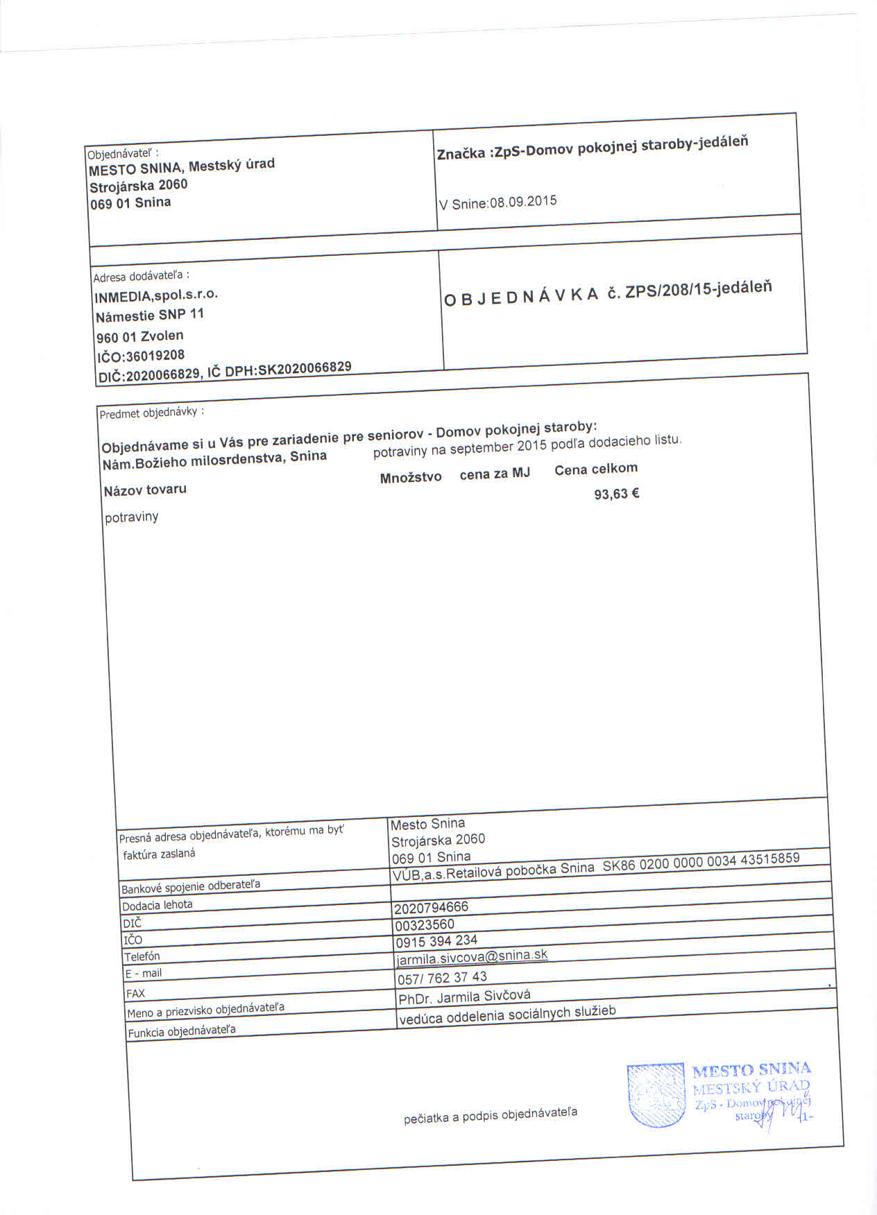 Detail objednávky ZPS/208/15-jedáleň