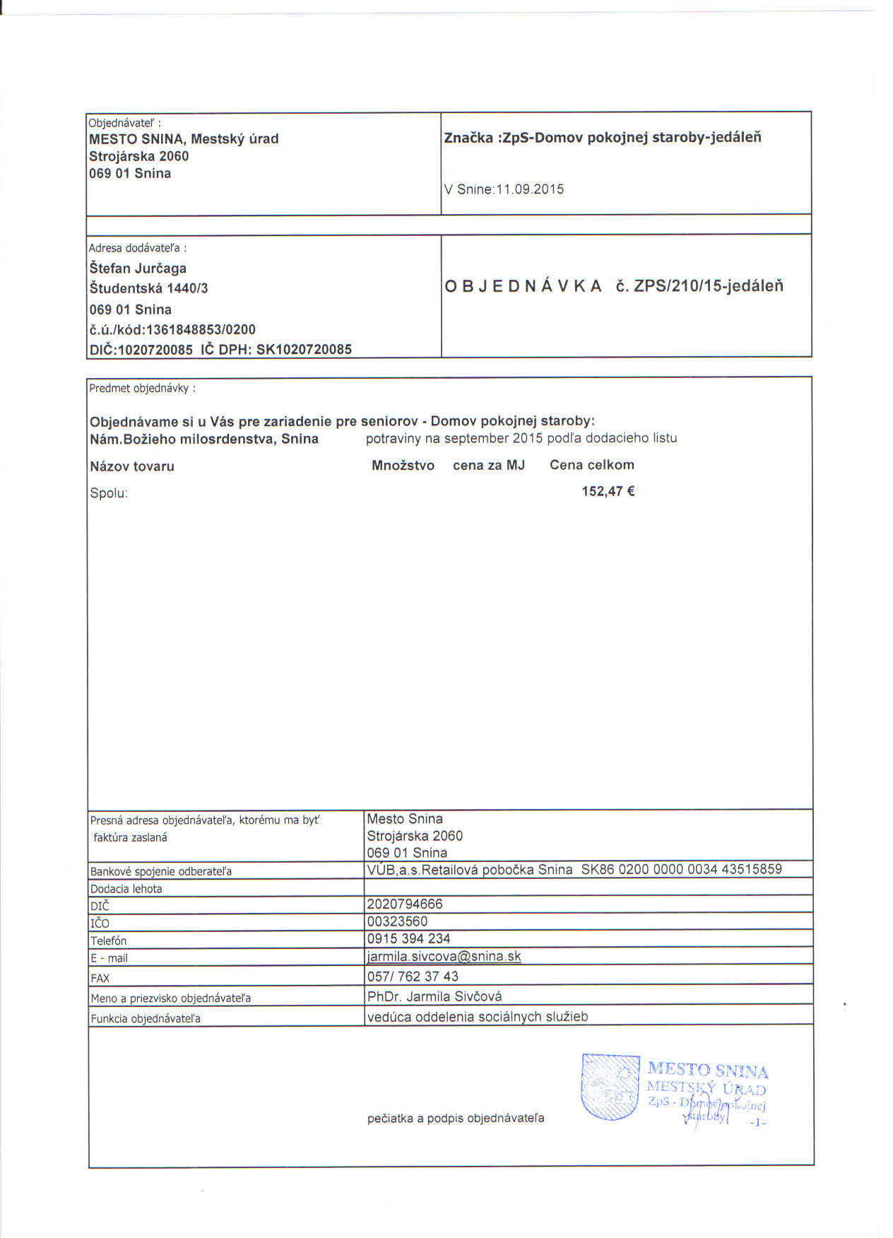 Detail objednávky ZPS/210/15-jedáleň