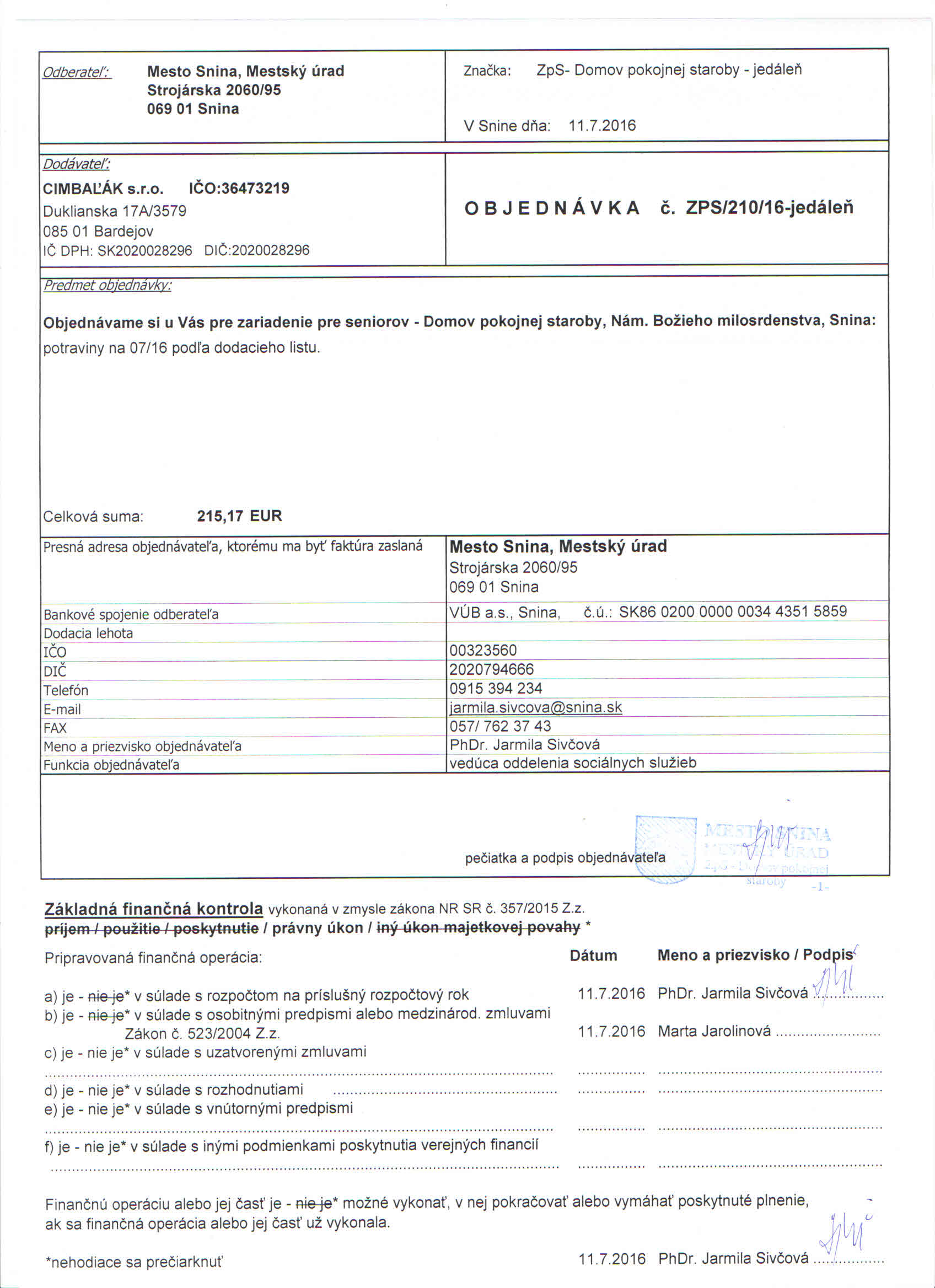 - Mesto Snina, Mestský úrad Snina, Strojárska 2060/95, 069 01 Snina