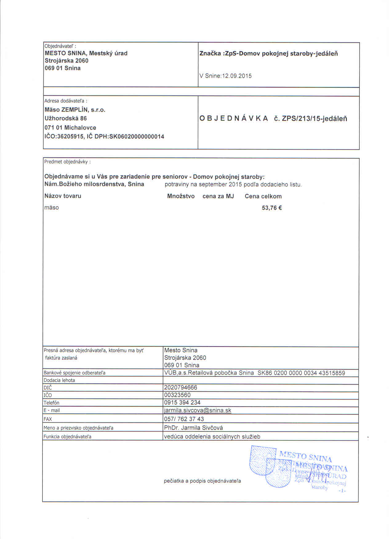 Detail objednávky ZPS/213/15-jedáleň