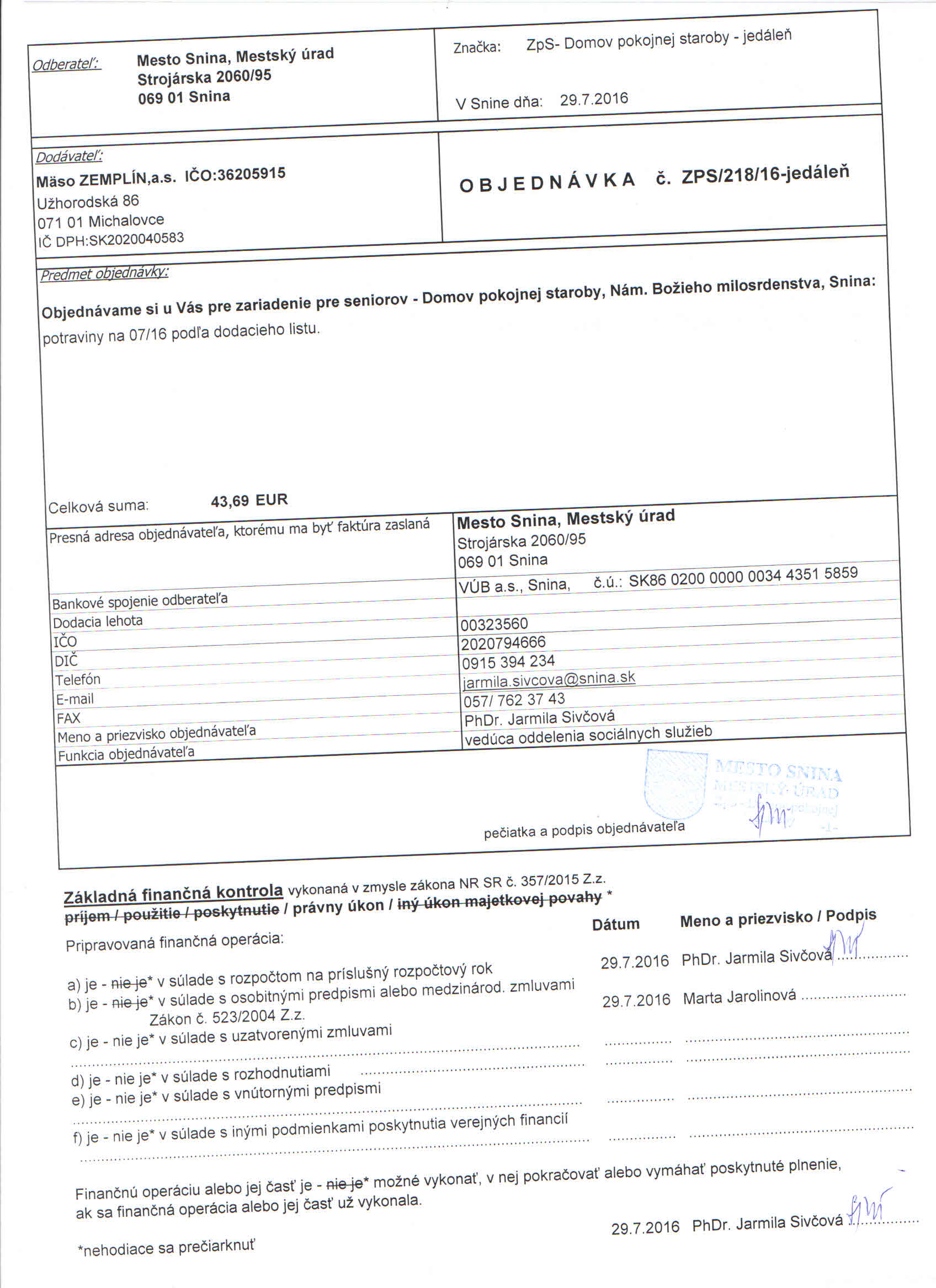 - Mesto Snina, Mestský úrad, Strojárska 2060/95, 069 01 Snin