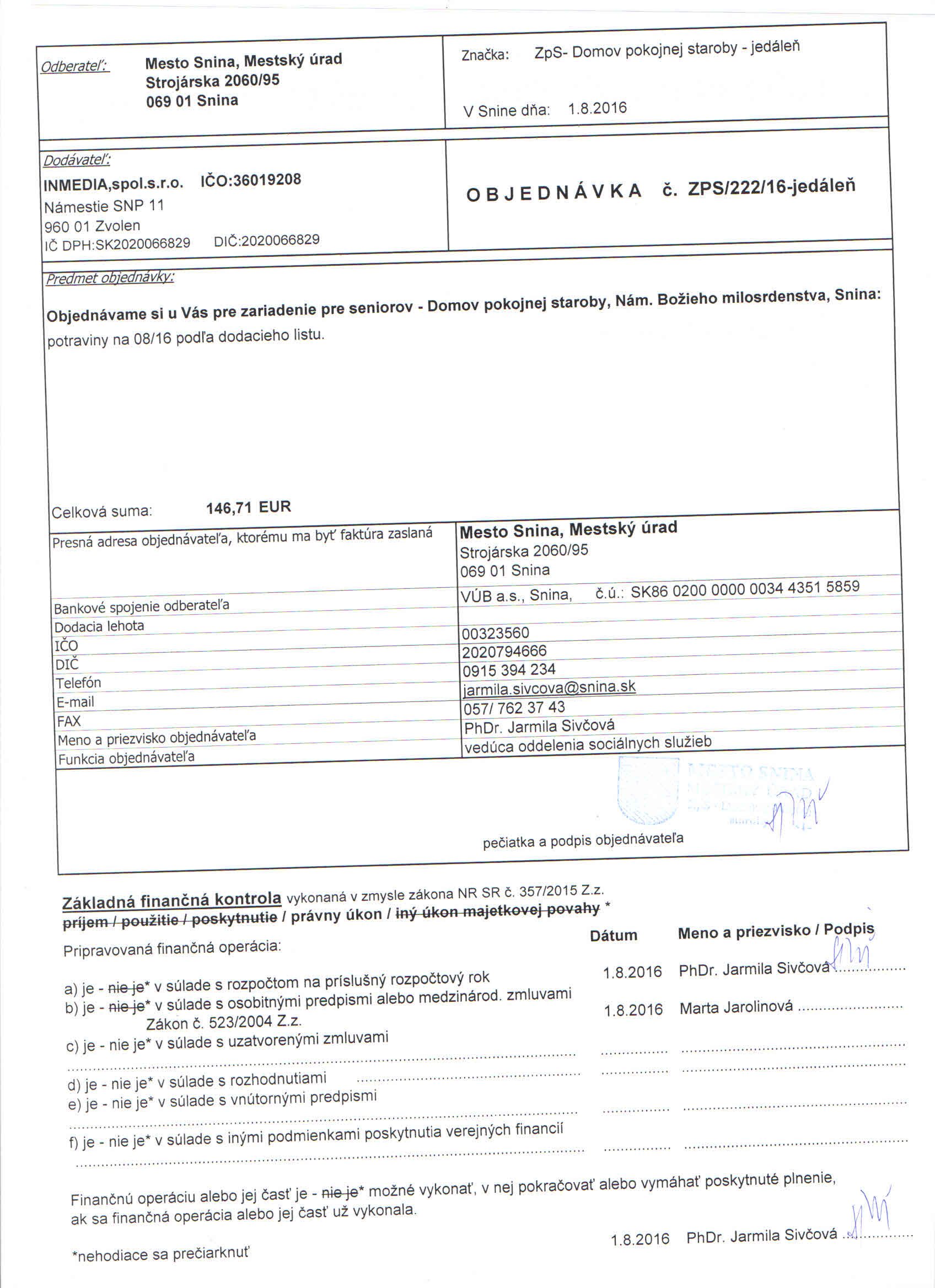 Detail objednávky ZPS/222/16
