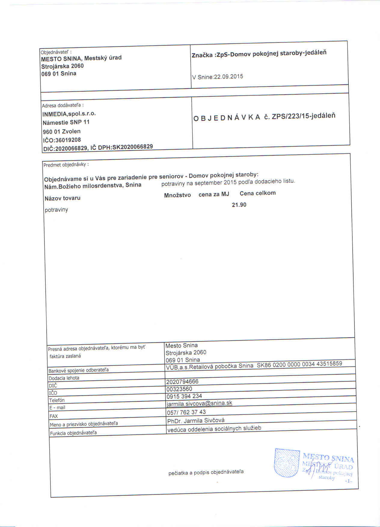 Detail objednávky ZPS/223/15 - jedáleň