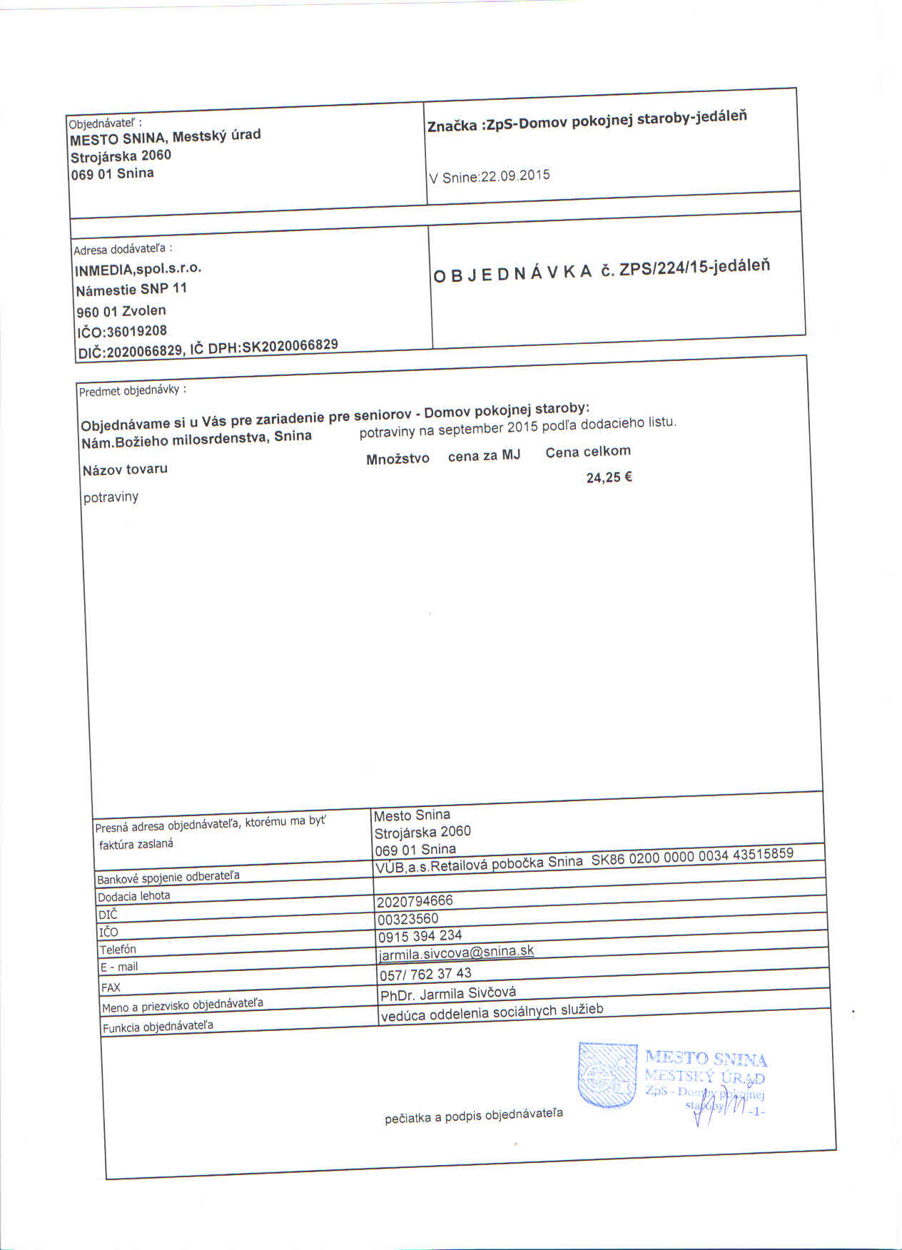 - Mesto Snina, Mestský úrad Snina, Strojárska 2060/95, 069 01 Snina